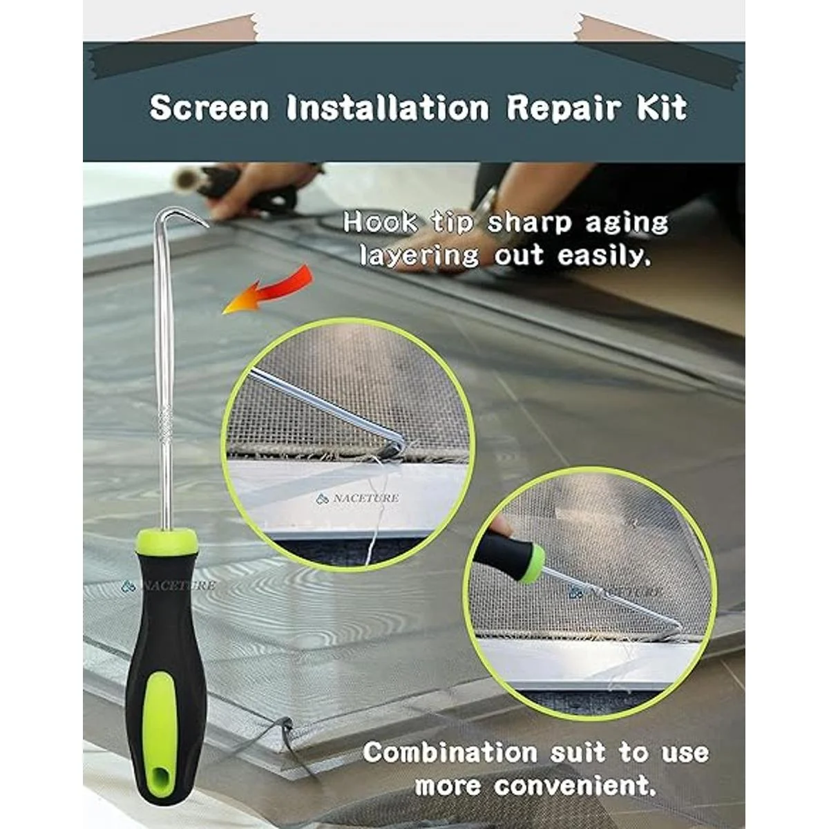 Kit de herramientas para puerta de mosquitera, 20 clips de instalación de pantalla con herramienta de balanceo de pantalla y gancho de puerta de extracción, juego de herramientas mecánicas para instalar pantallas de ventanas y puertas