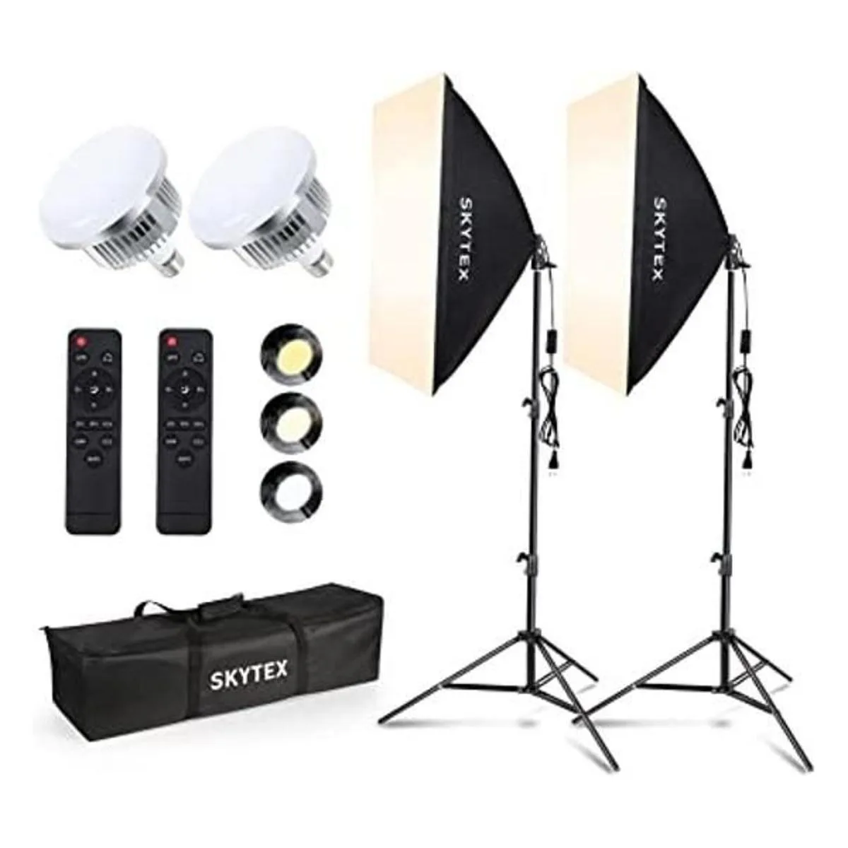 Kit de iluminación Softbox, kit de iluminación continua de fotografía skytex con caja suave de 2 x 20 x 28 pulgadas, 2 bombillas LED E27 de 85 W, 27006400 K, equipo de luces de estudio fotográfico para grabación de cámara, grabación de video