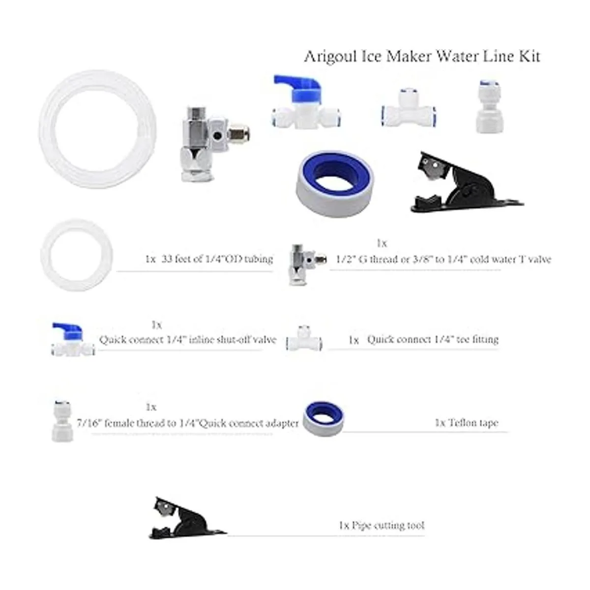 Kit de línea de agua universal: el kit de conexión para máquina de hielo es adecuado para conectar una variedad de diferentes filtros de agua incluyendo sistemas de ósmosis inversa a la mayoría de marcas de refrigeradores tiene la función de máquina de hielo o dispensador de agua fría.