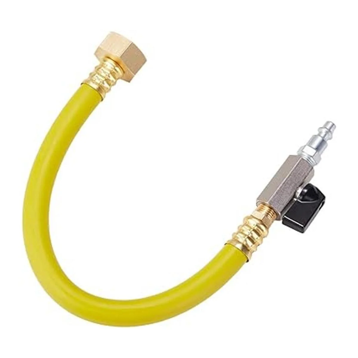 El kit de soplado de aspersor premontado: 16.3 pulgadas aproximadamente 16.3 in, proporciona mayor resistencia y durabilidad. Fácil de hacer invierno, soplar agua del sistema de aspersor y línea de agua de caravana. La manguera es de 3/8 pulgadas de diámetro nominal. Goma sintética reforzada flexible, resistente al agua y al aceite.