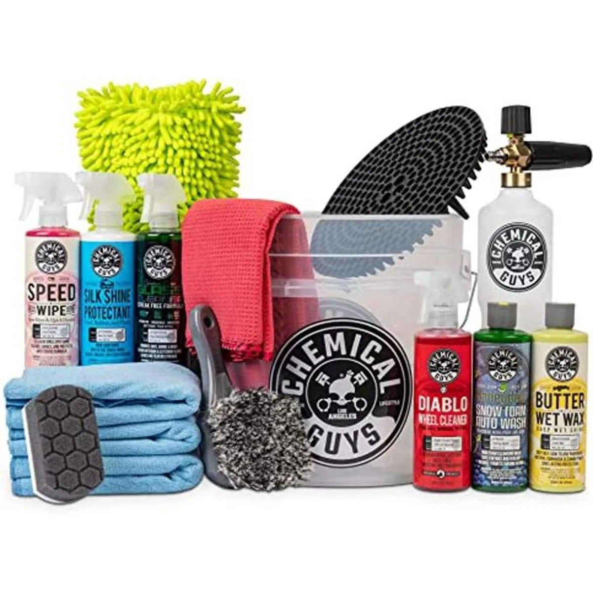 Kit de lavado de coche de 16 piezas Arsenal Builder de Chemical Guys HOL169 con pistola de espuma, cubeta y 6 productos químicos de limpieza para el cuidado del automóvil de 16 onzas líquidas funciona con manguera a presión