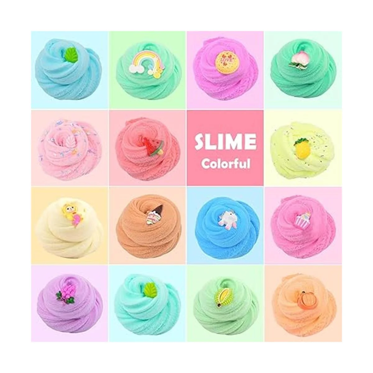 Paquete: 15 x 2.0 fl oz, paquete de 15 slimes que incluye azul, amarillo, verde, rosa, etc., paquete de 15 dijes de slime, suficiente slime colorido y accesorios para compartir varios niños