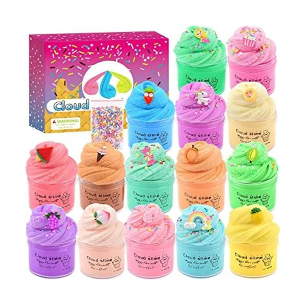 Kit de limo de nube perfumada, paquete de 15 unidades, con bonitos dijes de limo, juguete de masilla de recuerdo de fiesta de limo para niñas y niños, súper suave y no pegajoso