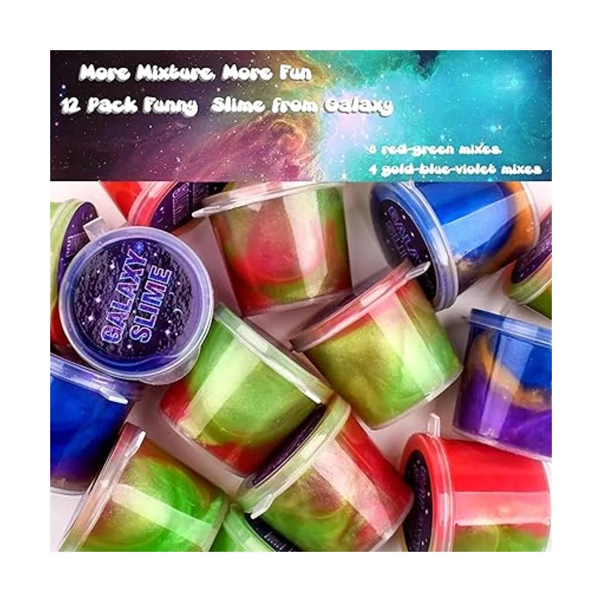 Kit de slime de galaxia: paquete de 12 mini slime de galaxia, exquisito embalaje de caja de regalo de galaxia, la colisión de texturas y colores especiales de slime da a los niños el misterio del espacio exterior y un ambiente navideño, que seguramente sorprenderá a los niños