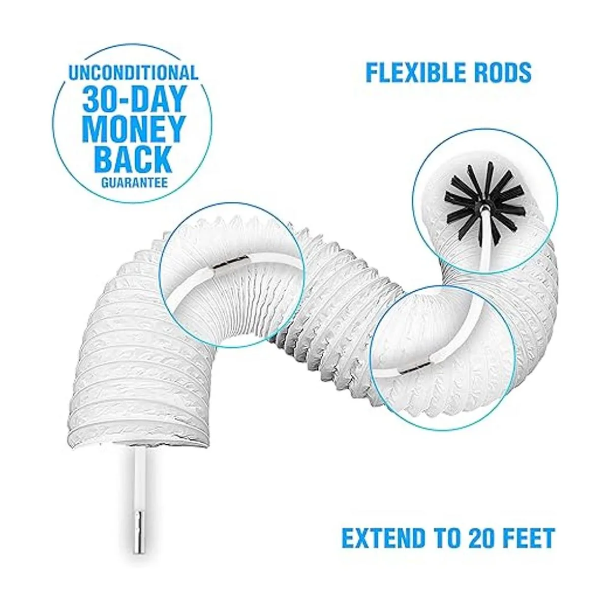 Kit de limpiador de ventilación de secadora (20 pies) innovador removedor de pelusa reutilizable de nailon fuerte | Cepillo de pelusa flexible con accesorio de taladro para una limpieza más rápida, sin riesgo, garantía de 100 días