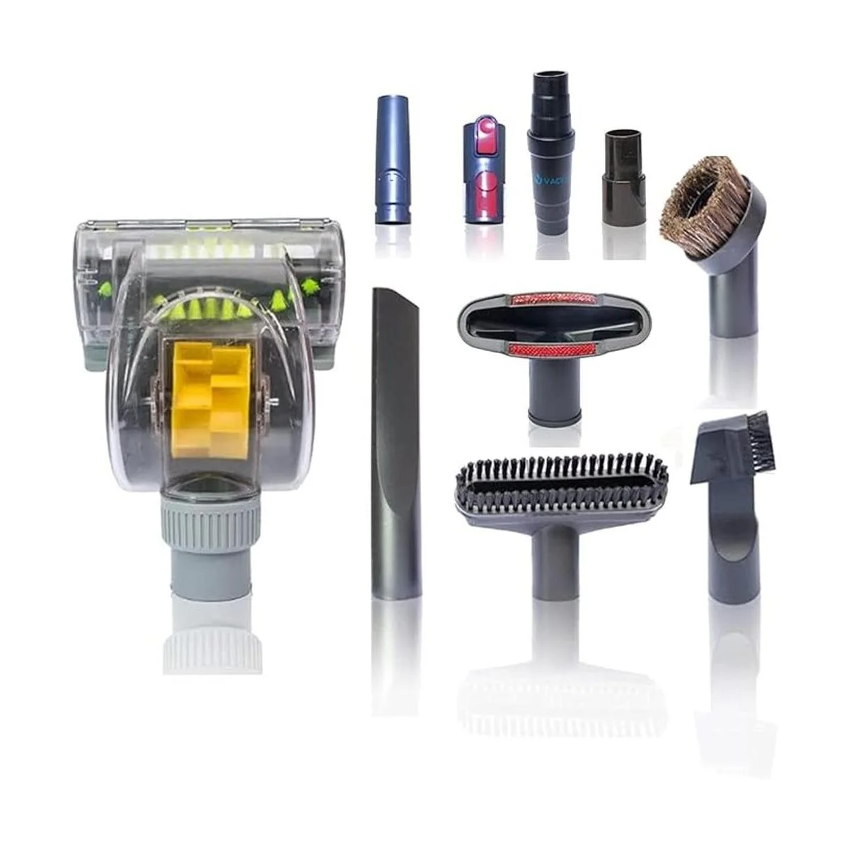 Kit de limpieza del hogar, accesorios de aspiradora y tapicería de mascotas impulsada por aire, cepillo turbo, herramienta de boquilla, accesorio para mascotas, cabezal giratorio con adaptador de accesorio de vacío de 1.378 in a 1.260 in y adaptador Dyson V8
