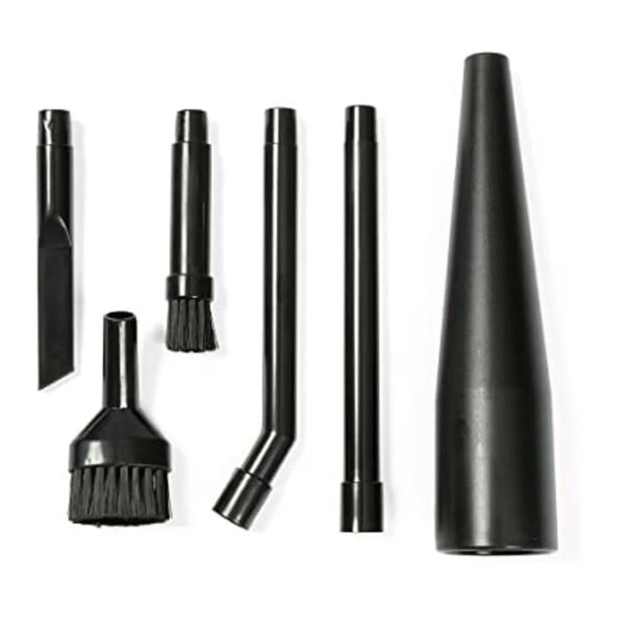 Este kit de microherramientas de limpieza incluye pequeños accesorios de aspiradora de tienda para detalles finos como una boquilla de soplado/adaptador, varita de extensión recta, varita de extensión en ángulo, cepillo de polvo redondo, cepillo de polvo rectangular y herramienta de grietas.