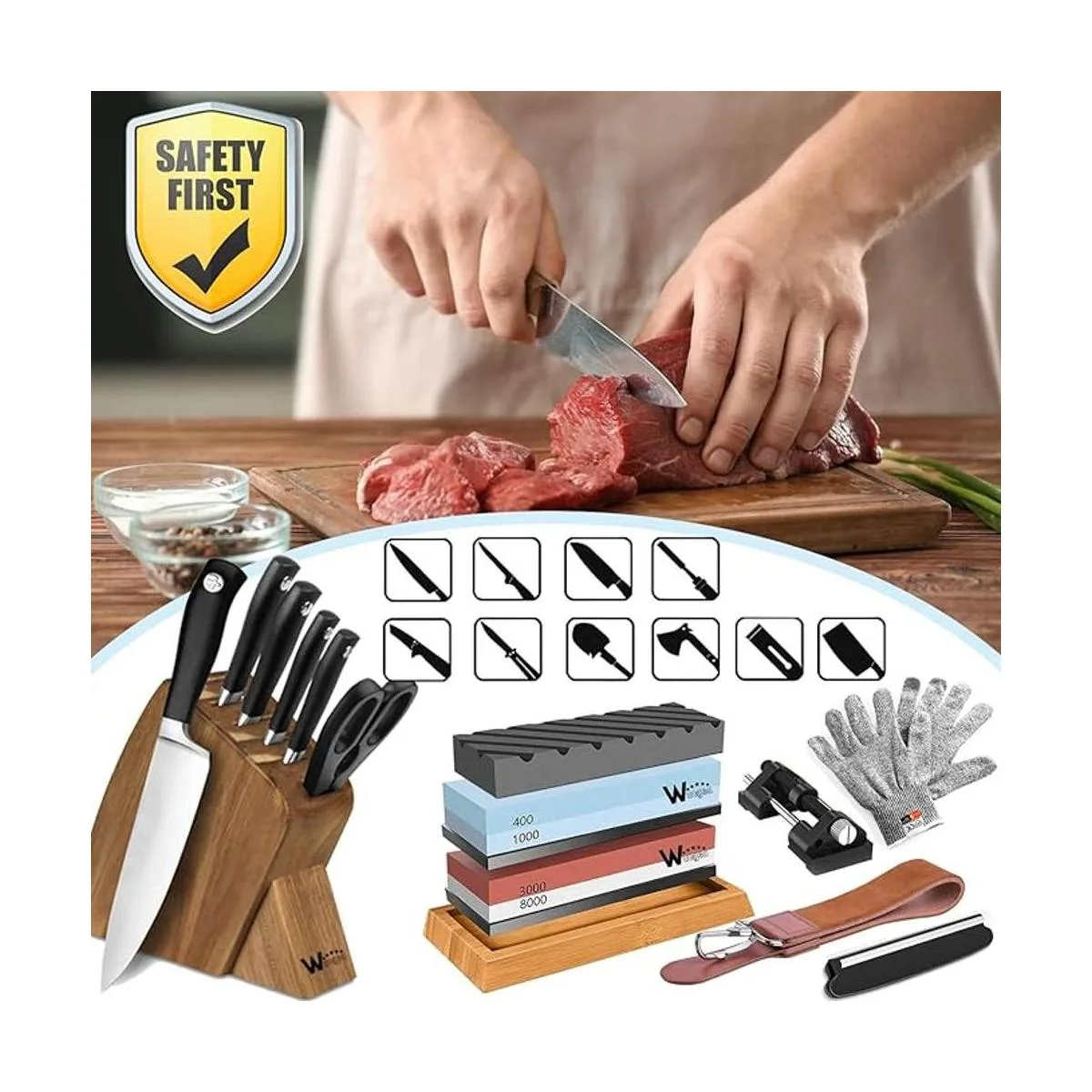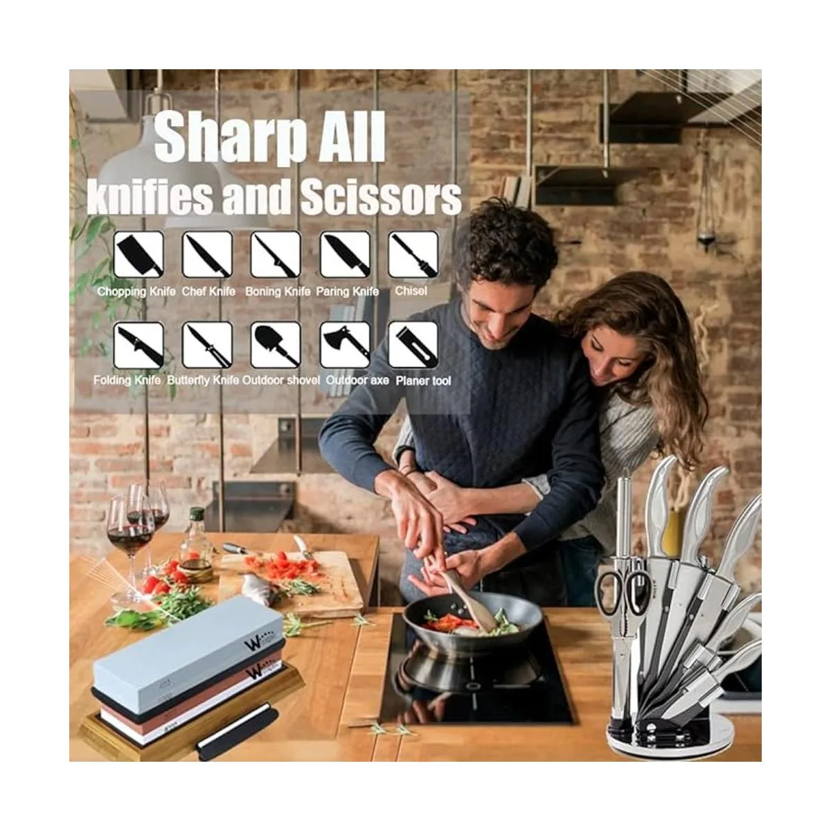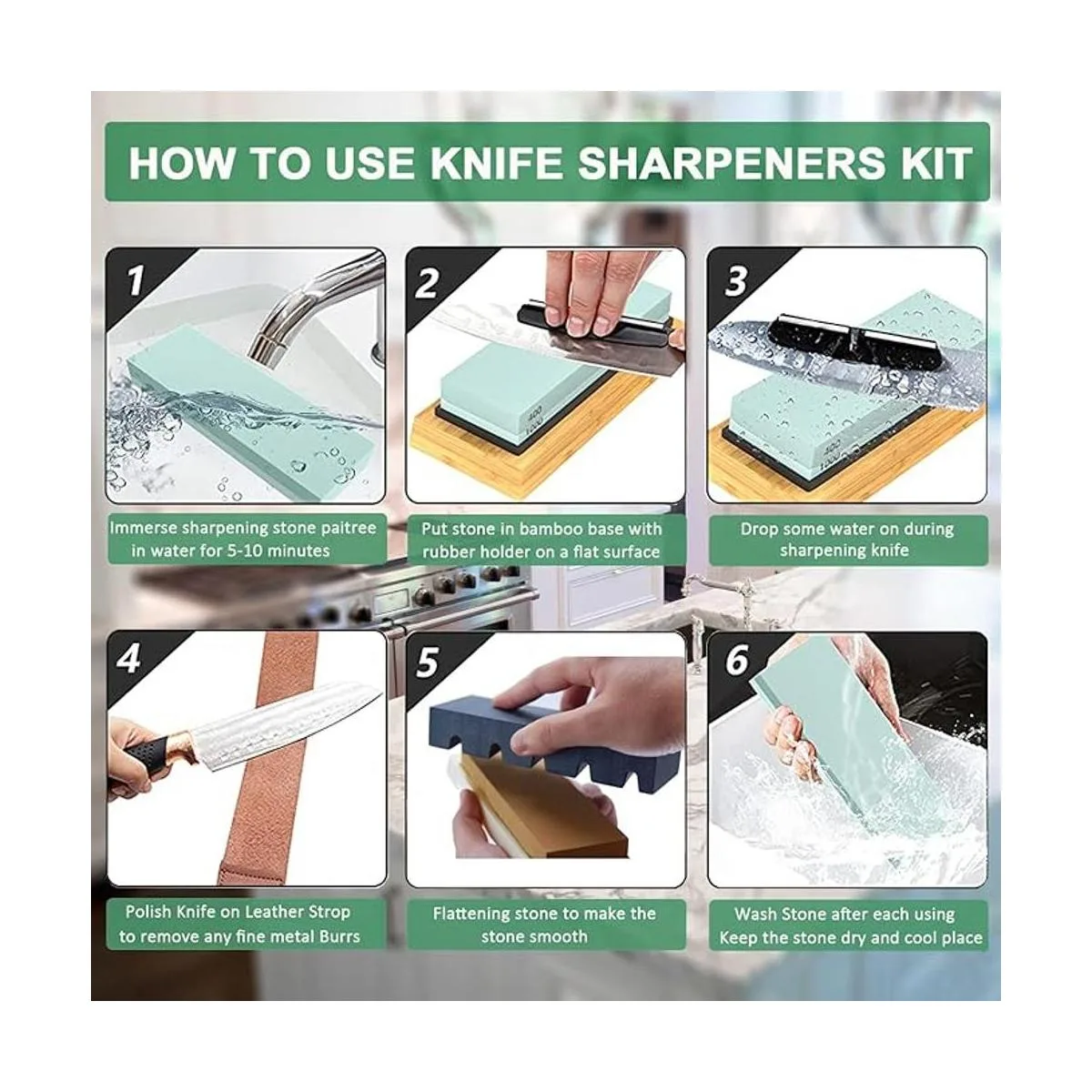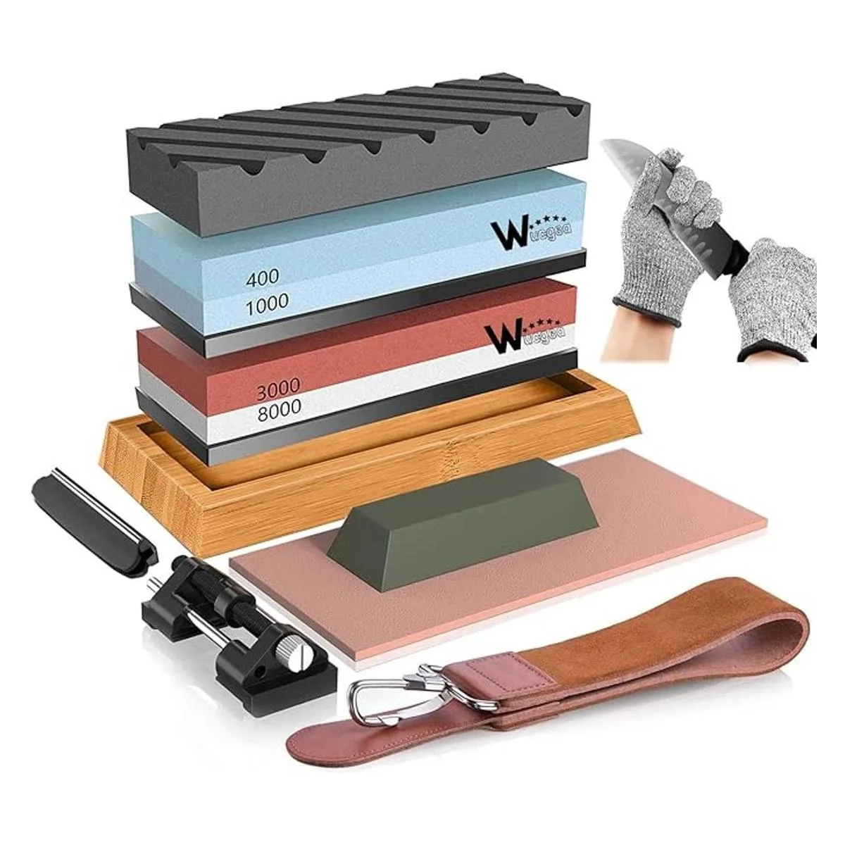Kit de piedra de afilar cuchillos, juego de afilado de piedra de afilar de cocina de grano 30008000 con guía de ángulo de base de goma antideslizante para aplanar guantes de cuero resistentes a cortes
