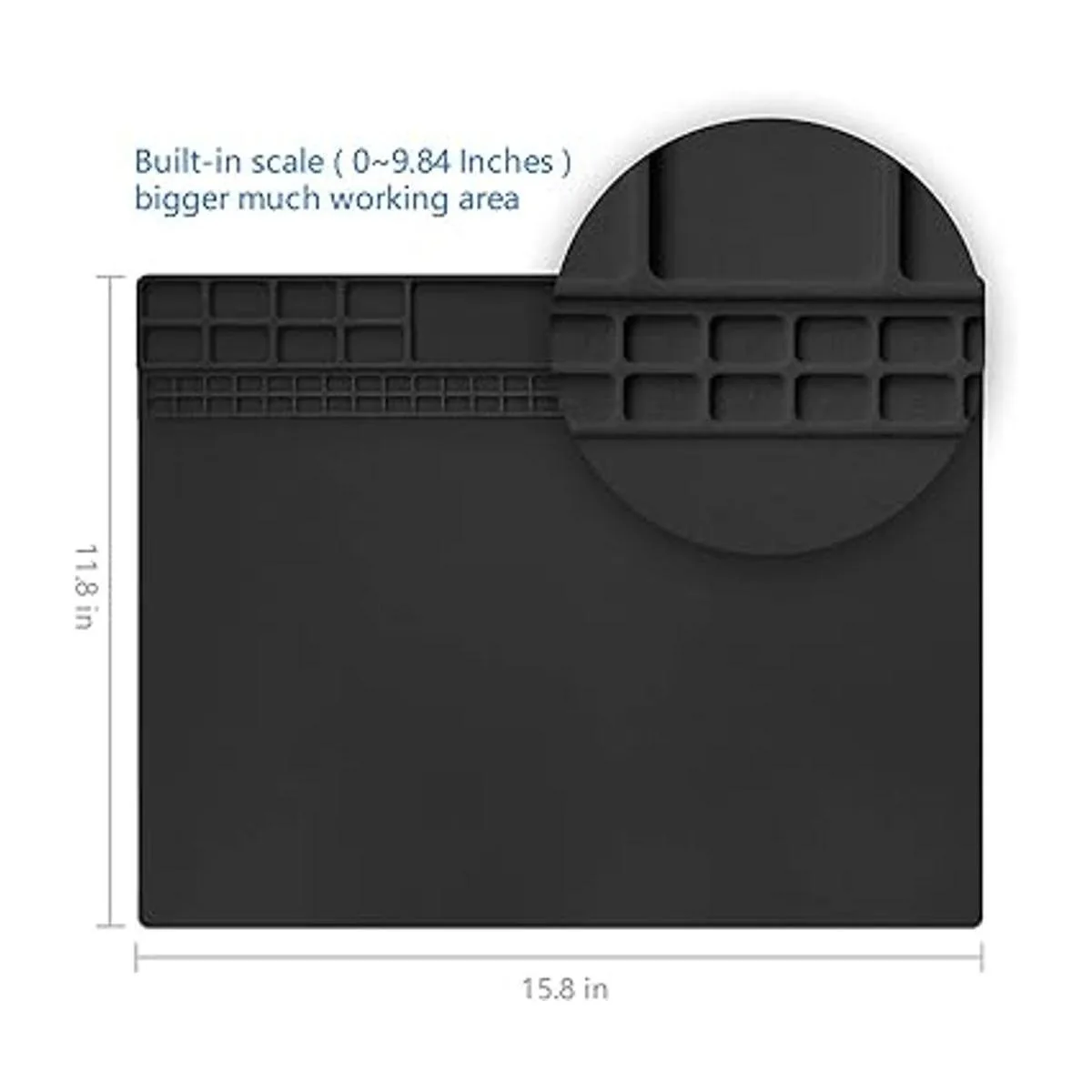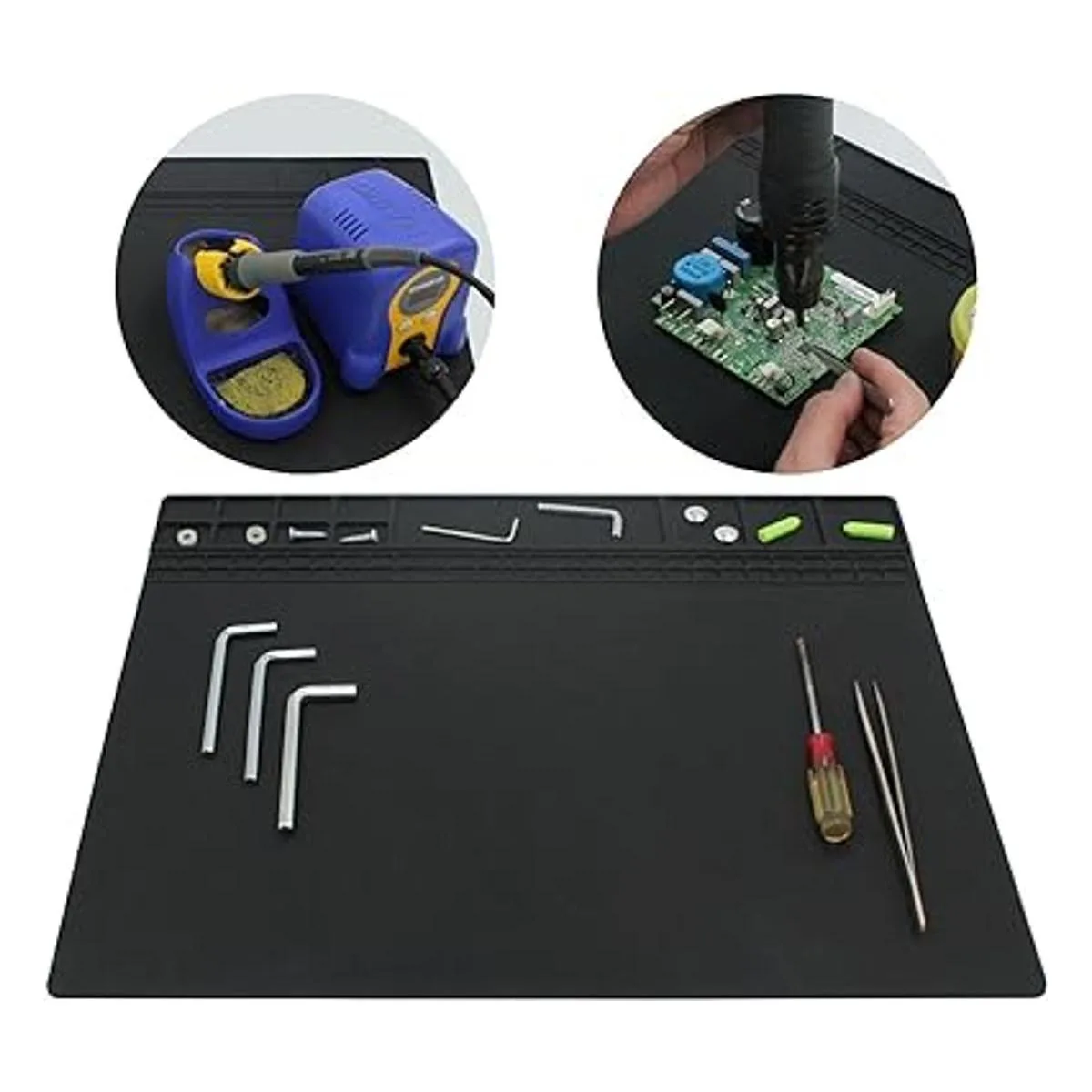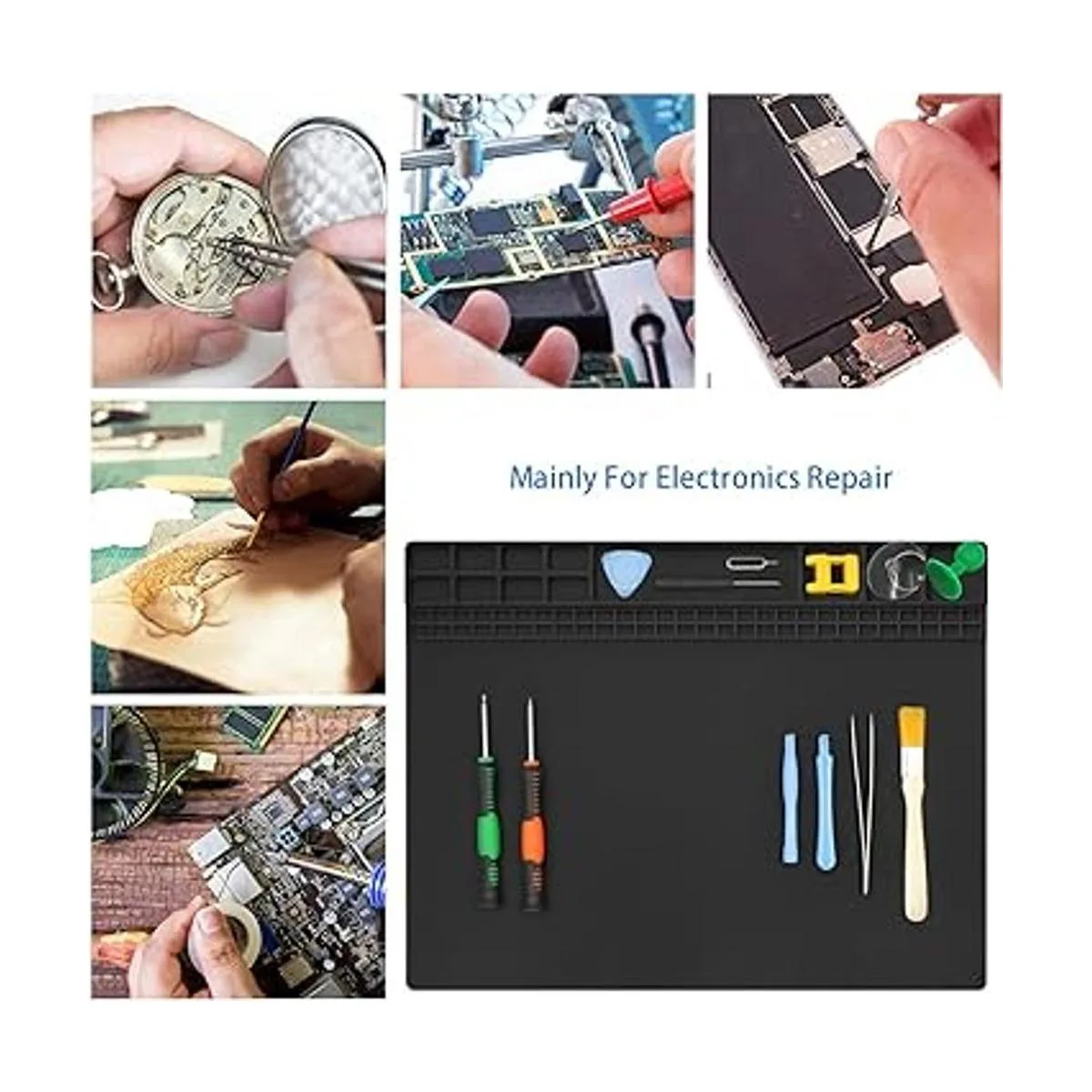 Kit de reparación de alfombrillas de silicona para reparación de teléfonos móviles, alfombrilla de soldadura grande, alfombrilla electrónica para soldador, reparación de teléfono, reparación de computadoras y reparación de otros dispositivos, 15.8 x 11.8 pulgadas color negro
