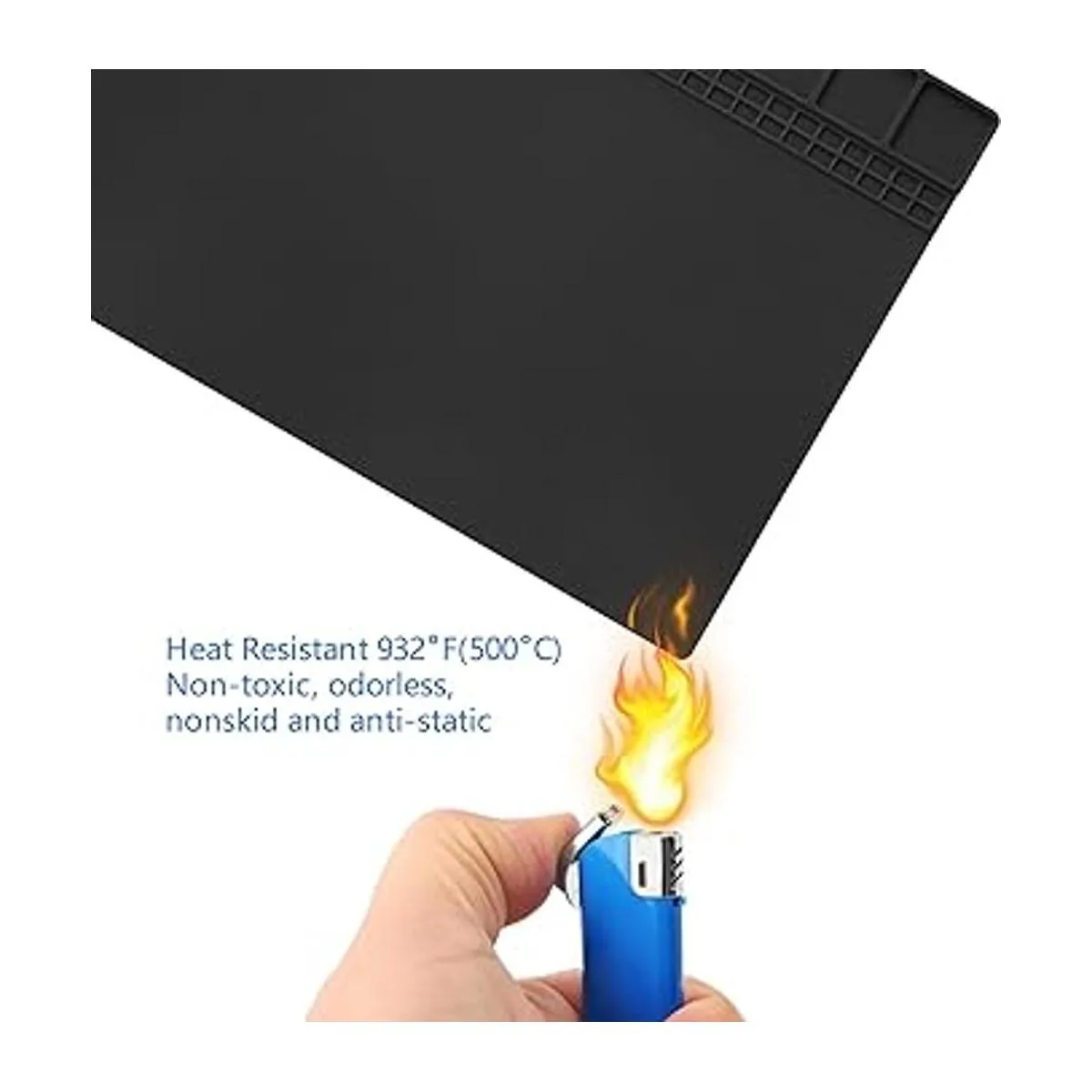 Alfombrilla de soldadura de silicona: adecuada para mantenimiento electrónico, resistencia a la temperatura hasta 932F, puede evitar daños o plataforma de mantenimiento, no se rompe por las altas temperaturas, mejora la eficiencia del trabajo