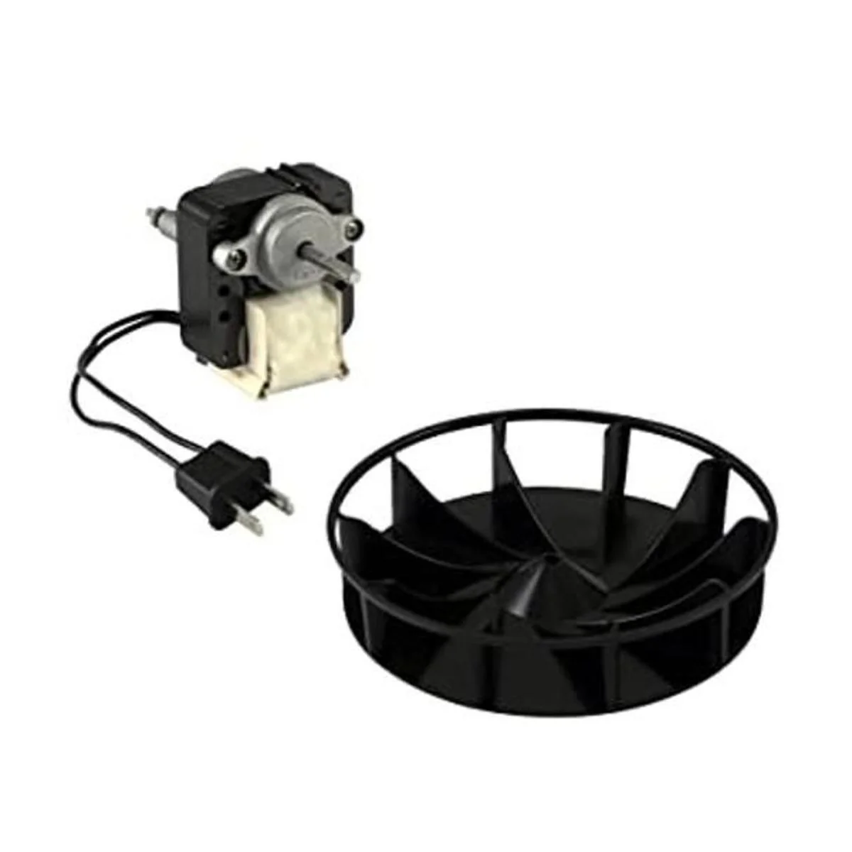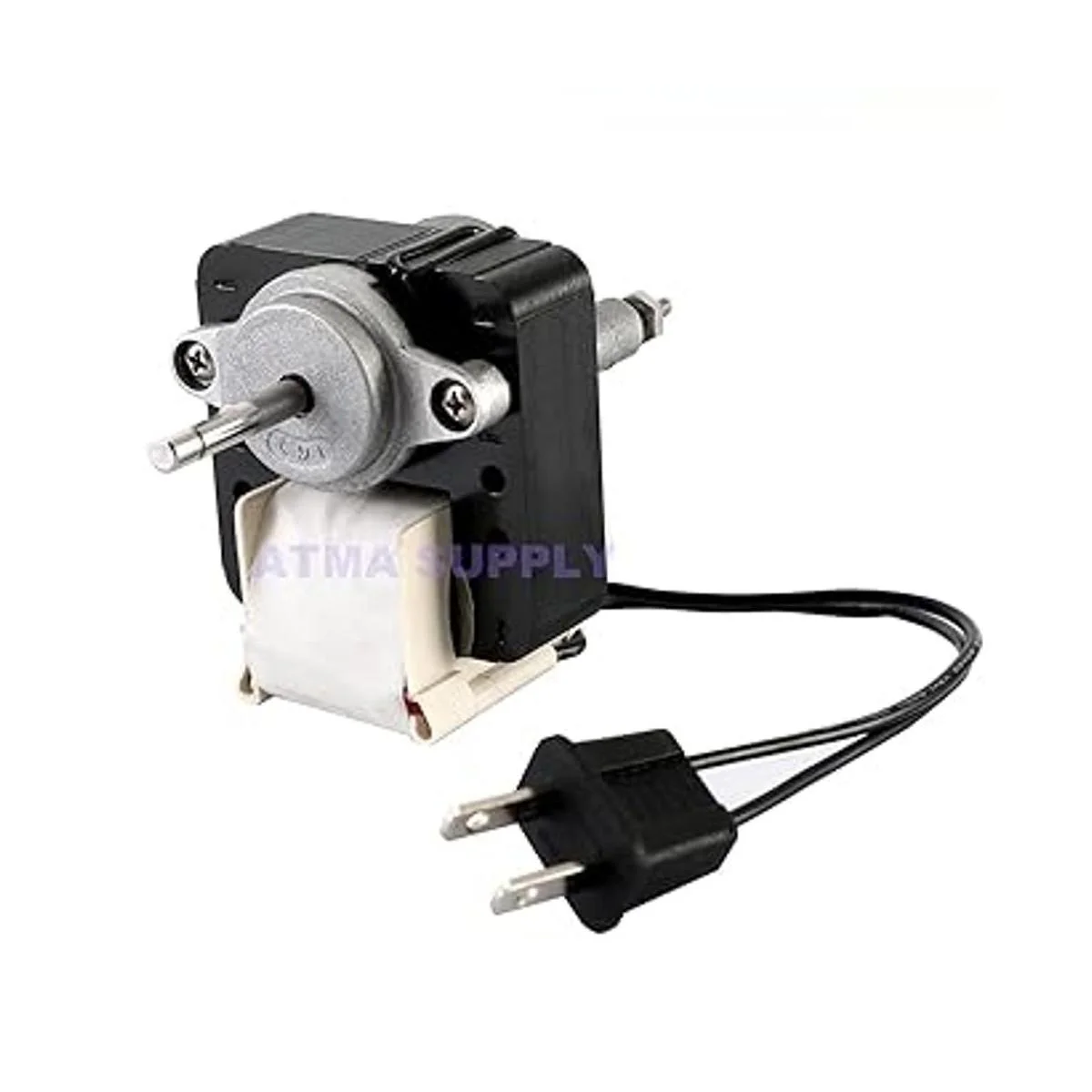 Motor de marco C, eje 7/32 pulgadas x 1 1/4 pulgadas con ranuras; longitud del cable: 6 1/2 pulgadas con enchufe de 2 clavijas; hoja de ventilador de plástico: 5.27 pulgadas de diámetro