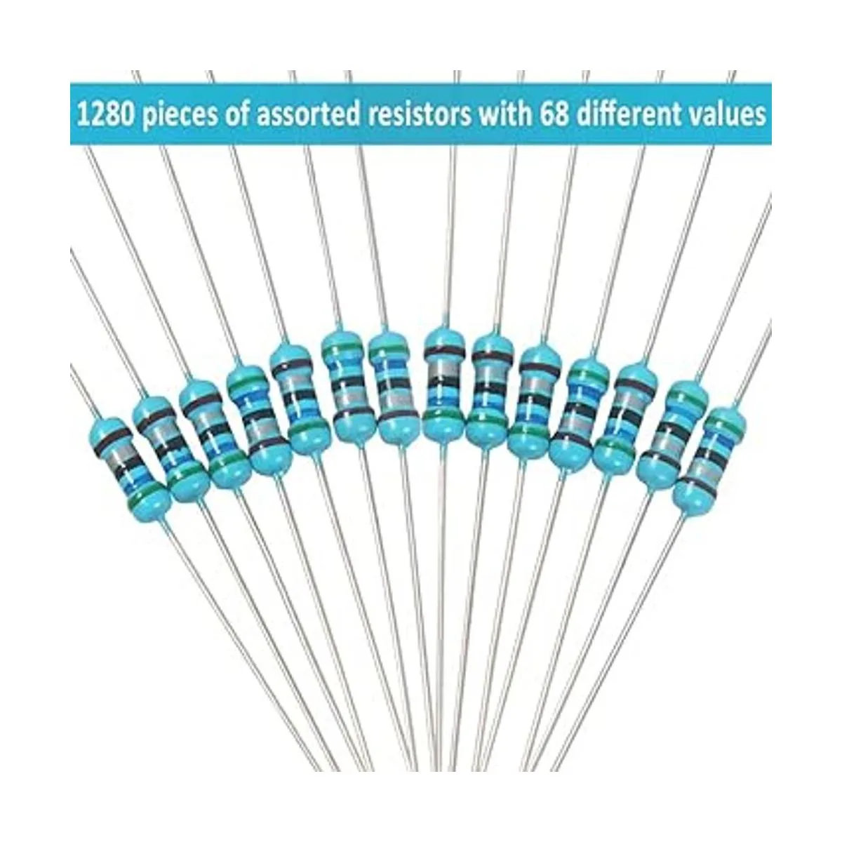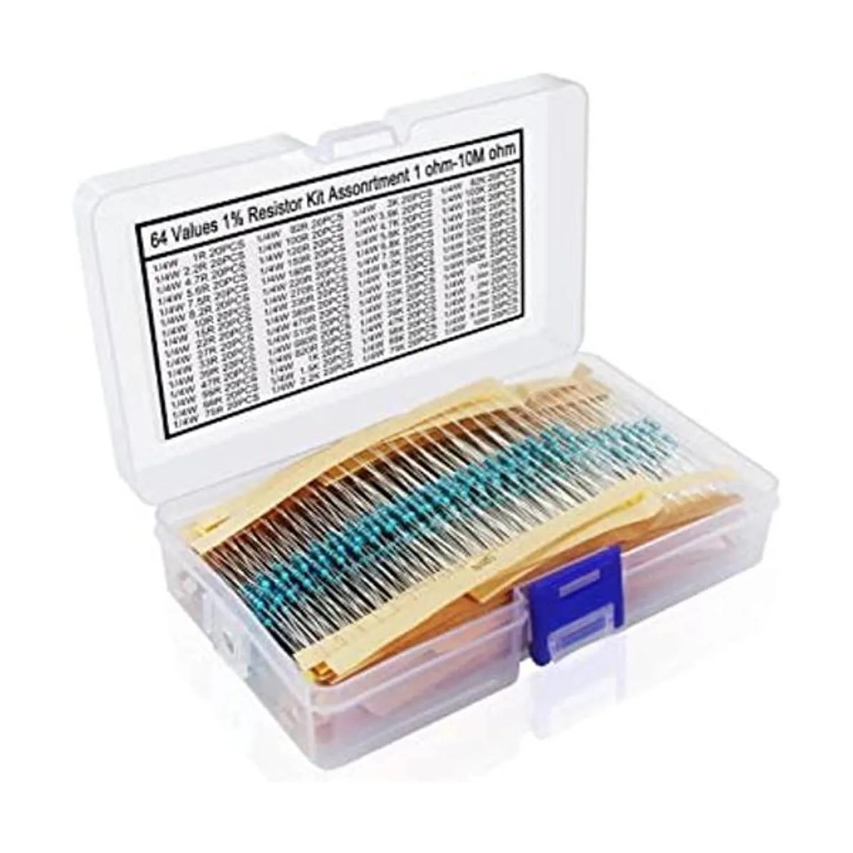 Kit de resistencia de 1280 piezas, 64 valores, 1 de resistencias surtidas, 1 ohmio10M ohmios 14W surtido de resistencias de película metálica para proyectos y experimentos de bricolaje