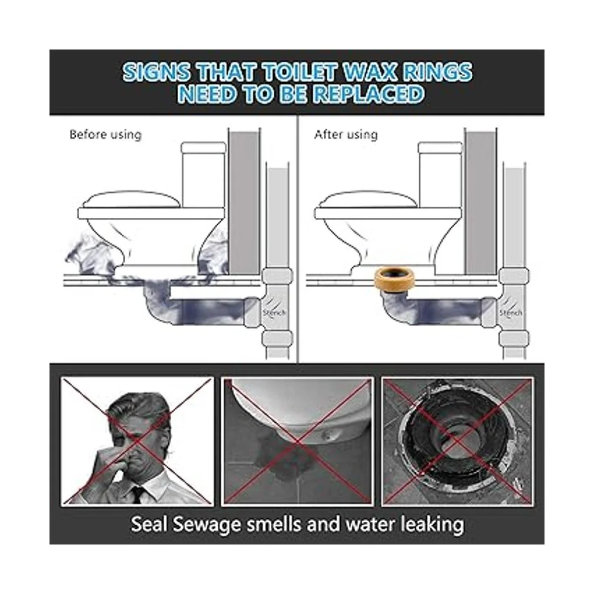 Sin fugas: el anillo de cera de inodoro extra grueso incluye embudos de goma negra para un olor duradero y sellado impermeable. Di adiós a los olores de aguas residuales, problemas de fugas o gas desagradable.