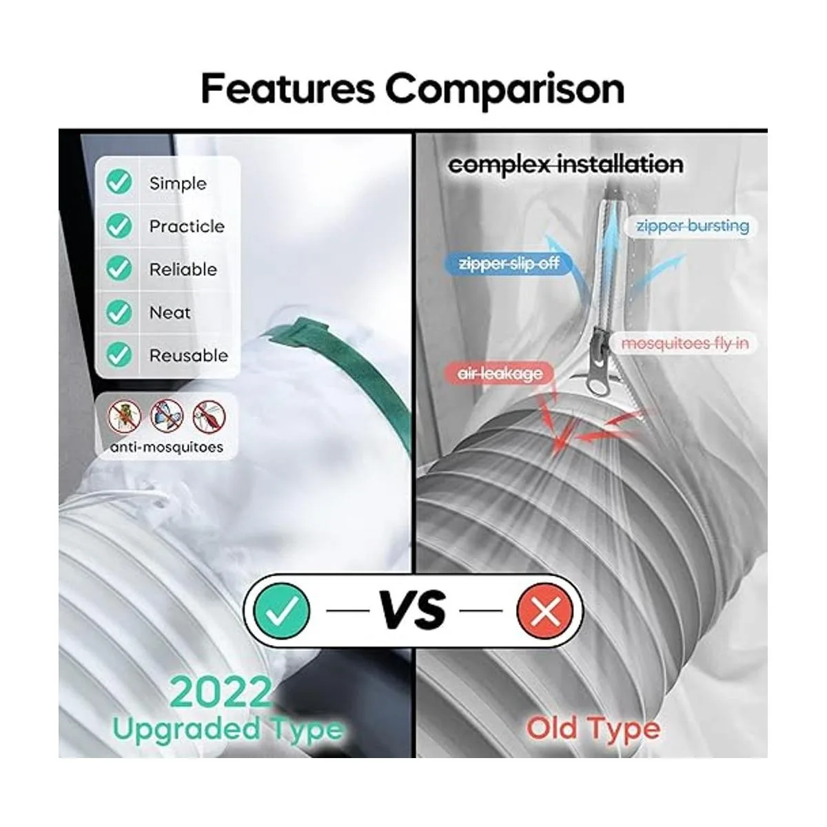 Mejor sellado Reemplaza el viejo diseño de cremallera con un cordón para permitir que la tela de sellado se ajuste mejor a todos los tamaños de 1 a 6 pulgadas, este kit de ventilación de CA de nuevo diseño tiene un excelente efecto de sellado y puede lograr un verdadero hueco 0, bloqueando firmemente el aire fresco interior mientras que también evita que el flujo de calor al aire libre pase o lluvia, capullos de mosquitos, etc. de derramarse en la habitación. Tejido especial impermeable TU con proceso de blanqueamiento aislante del calor, que puede reflejar los rayos del sol de manera eficiente, enfriamiento rápido, ahorro de energía real y ahorro de dinero.
