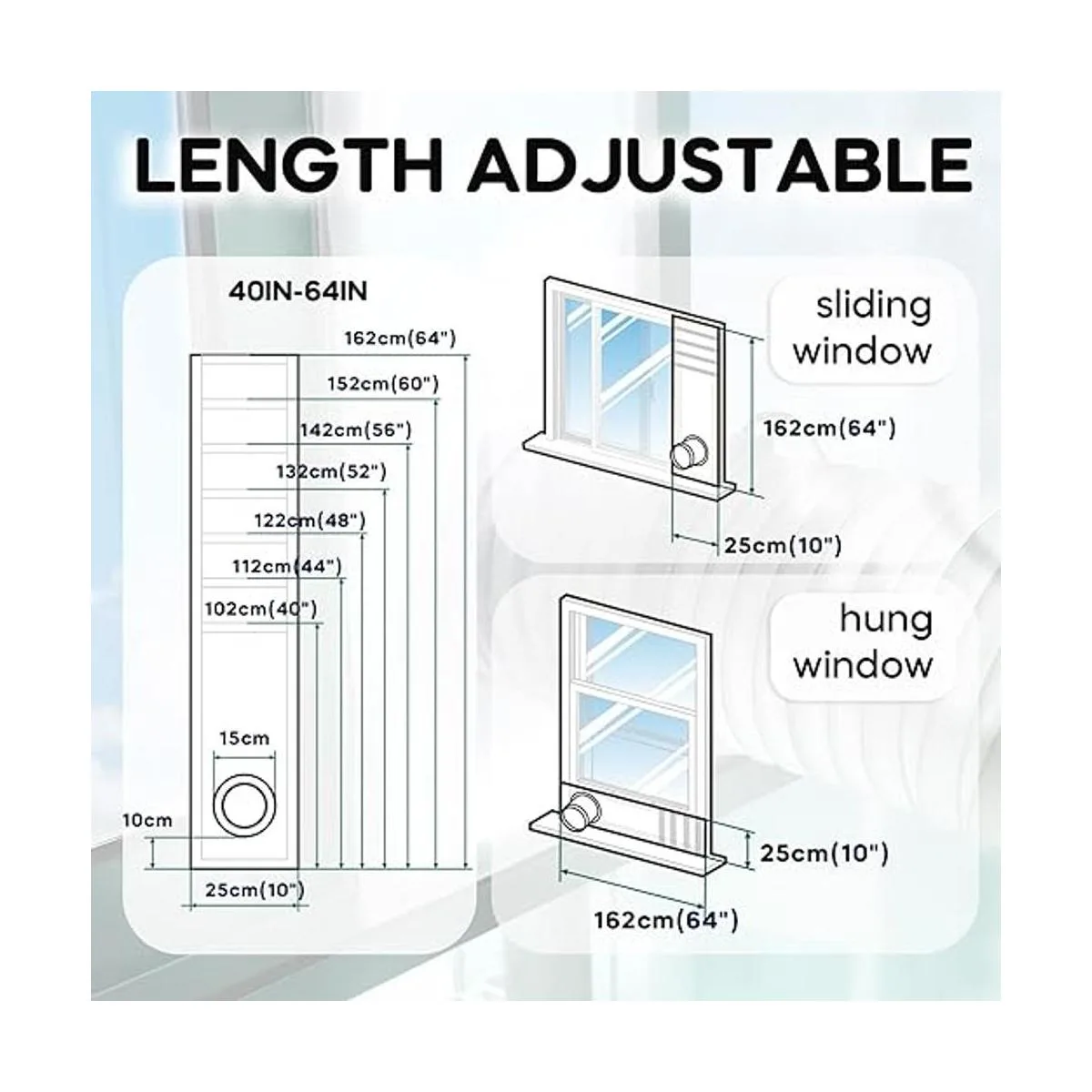 Kit de sellado de ventana de CA portátil, kit de sellado de ventilación de ventana para secadora de aire acondicionado portátil, 25 x 56 63.8 in de longitud ajustable 2022, sellado completo actualizado, impermeable, fácil de instalar