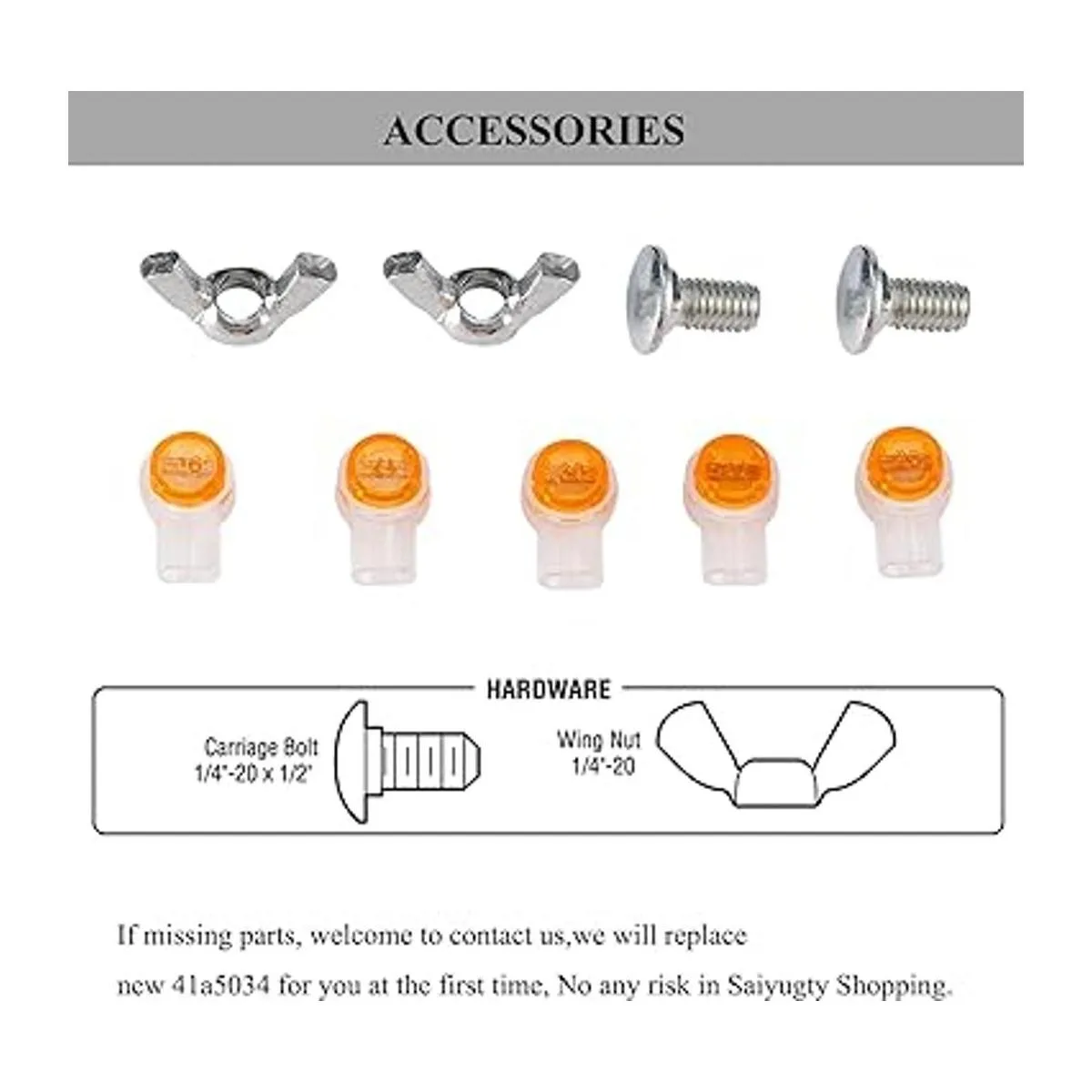 El paquete incluye: el kit de sensores de seguridad para garaje 41A5034 incluye 2 sensores de seguridad recepción y envío con cables adjuntos, 2 tornillos de montaje, 2 tuercas de ala, 1 instrucciones de instalación y 5 crimpadores de alambre. Si faltan piezas, bienvenido a ponerte en contacto con nosotros, reemplazaremos el nuevo 41a5034 por ti por primera vez, sin ningún riesgo de comprar en Saiyugty.