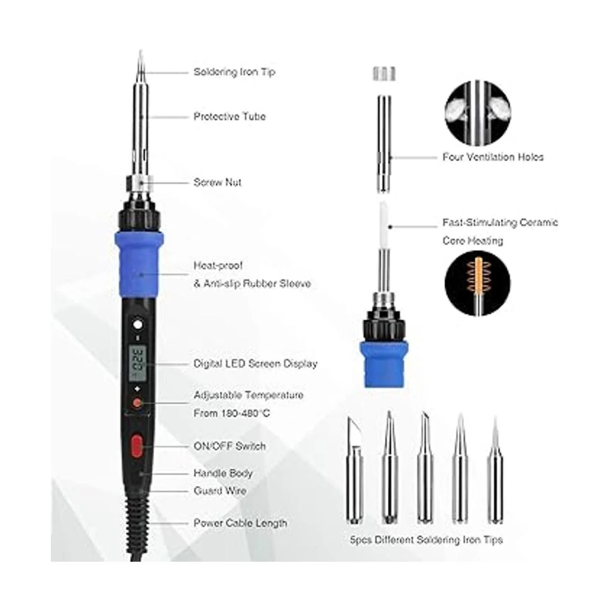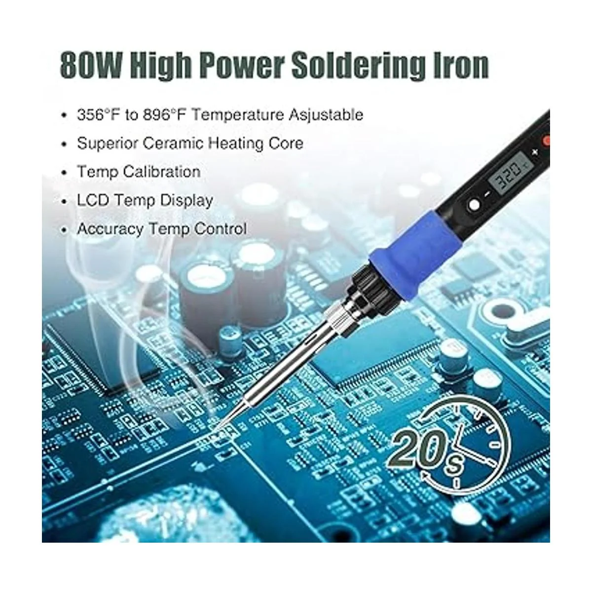 Tecnología de actualización: el soldador se actualiza a 80 W de alta potencia y puede hacer que el soldador se caliente rápidamente en 20 segundos; Este soldador puede ajustar con precisión la temperatura y un rango de temperatura flexible de 180 480 /356 F896 F.