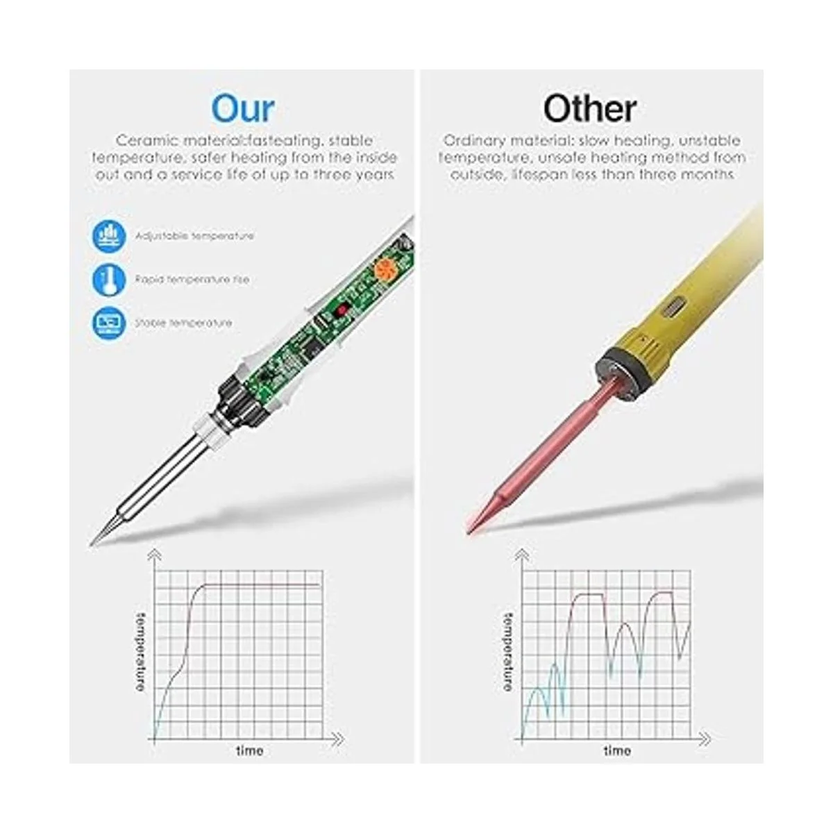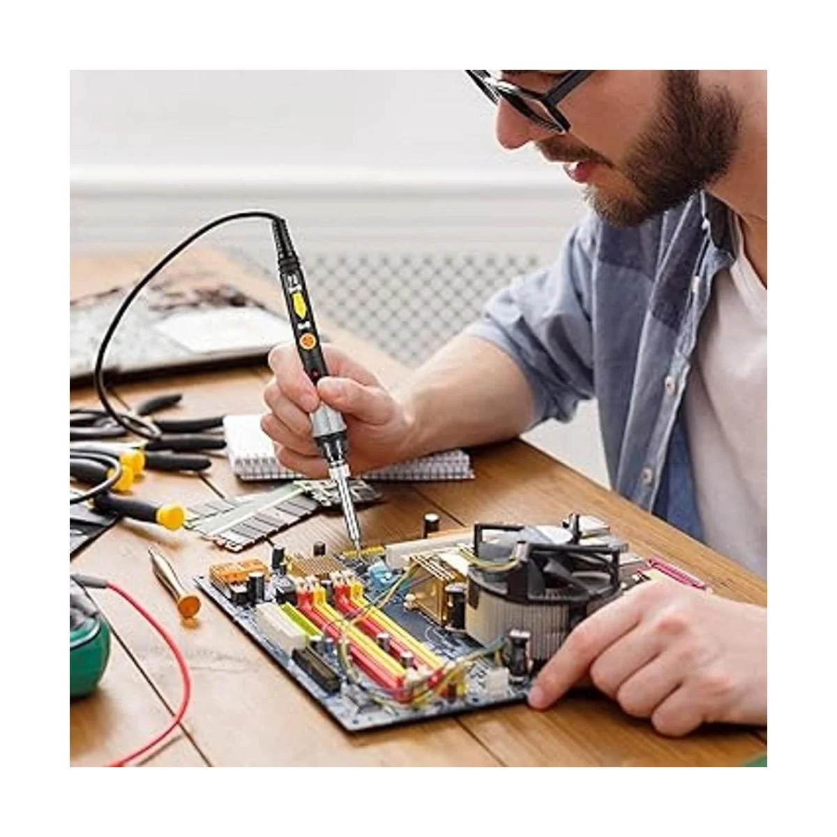 Ampliamente utilizado: en comparación con la estación de soldador, nuestro kit de soldadura electrónica es portátil para llevar. Ampliamente utilizado para placas de circuito de soldadura, reparación de electrodomésticos, soldadura de bricolaje en casa, manualidades, electrodomésticos, reparaciones eléctricas y electrónicas, otros trabajos de soldadura, etc. Es fácil de utilizar sin importar el aficionado electrónico o la ingeniería electrónica de estudio principiante.