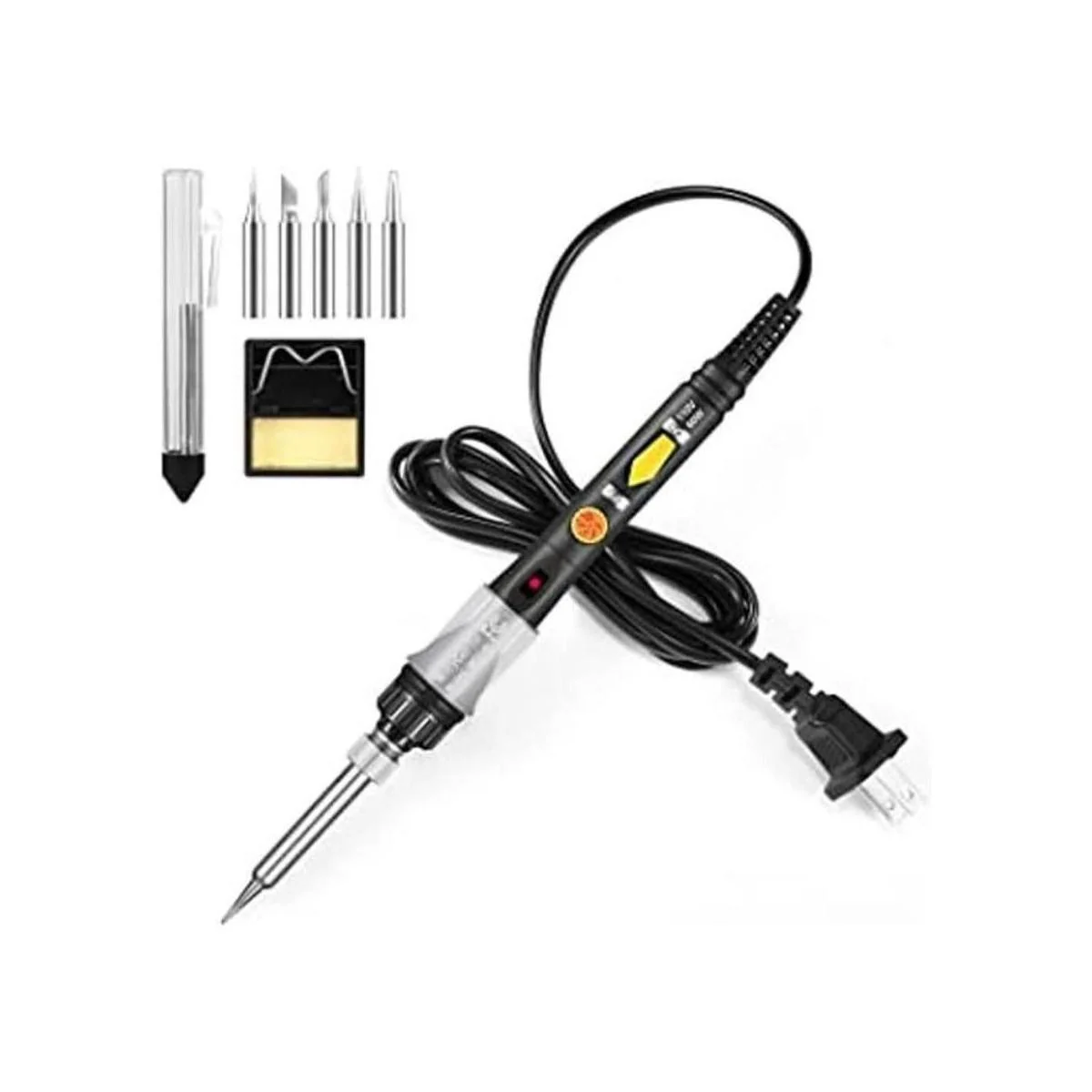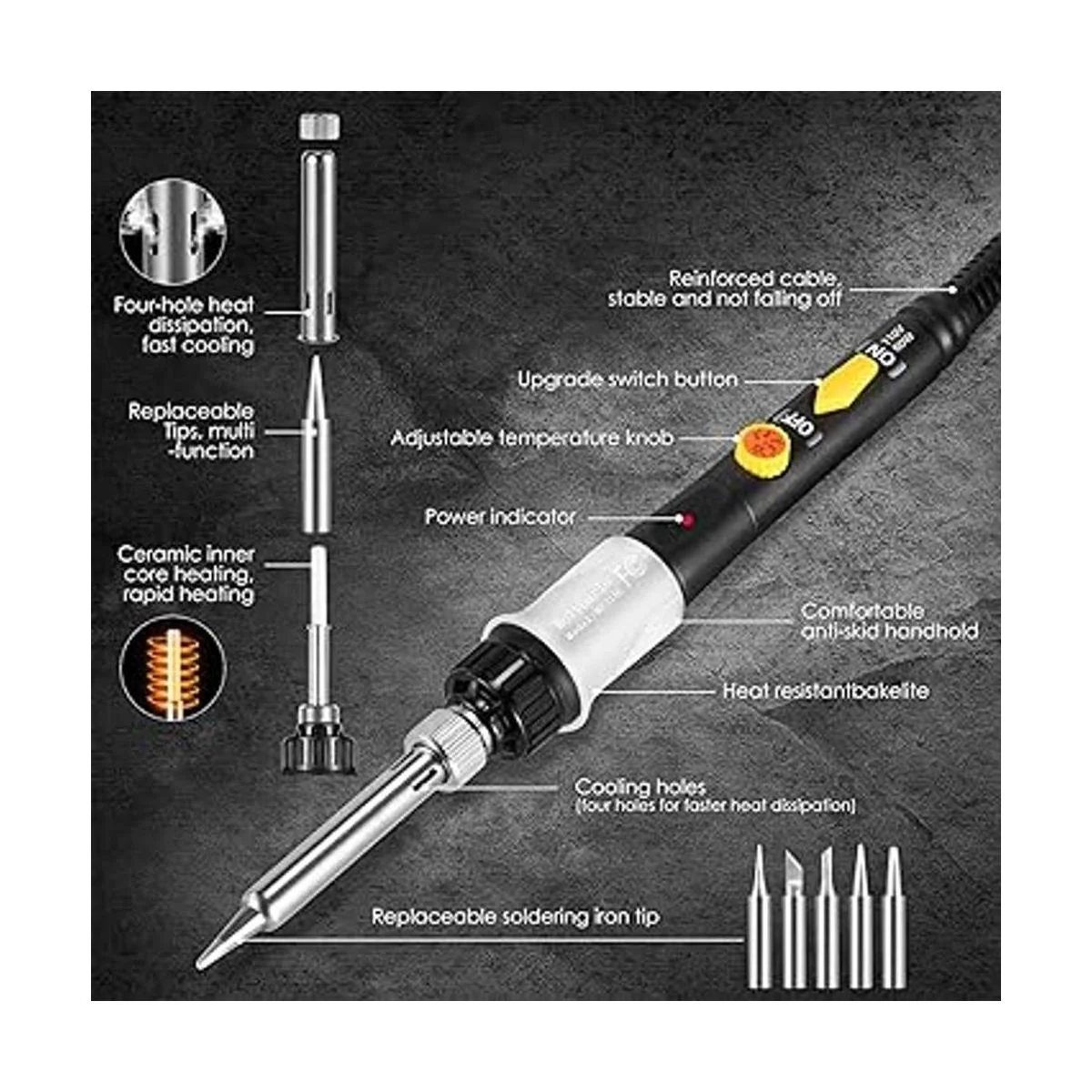 Kit de soldador, pistola de soldadura con temperatura ajustable y diseño termostático de cerámica de calentamiento rápido, interruptor de encendidoapagado, 5 puntas de soldador, alambre de soldadura, soporte, herramienta de soldadura negro