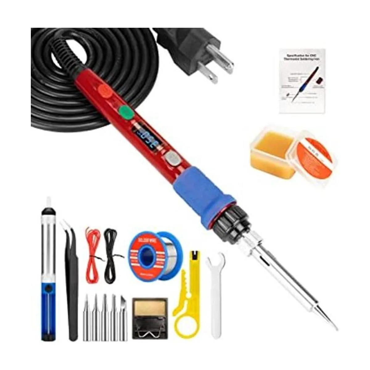 Kit de soldador digital LCD de 110 V con calentador de cerámica, kit de soldadura portátil con 5 piezas, soporte, tubo de soldadura, esponja, para metal, joyería, eléctrico, bricolaje