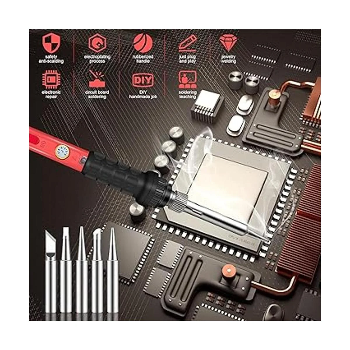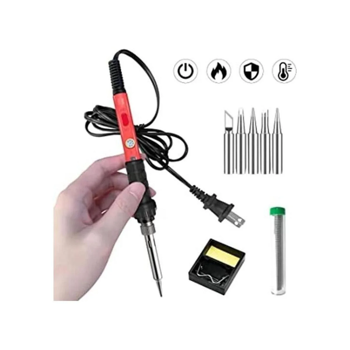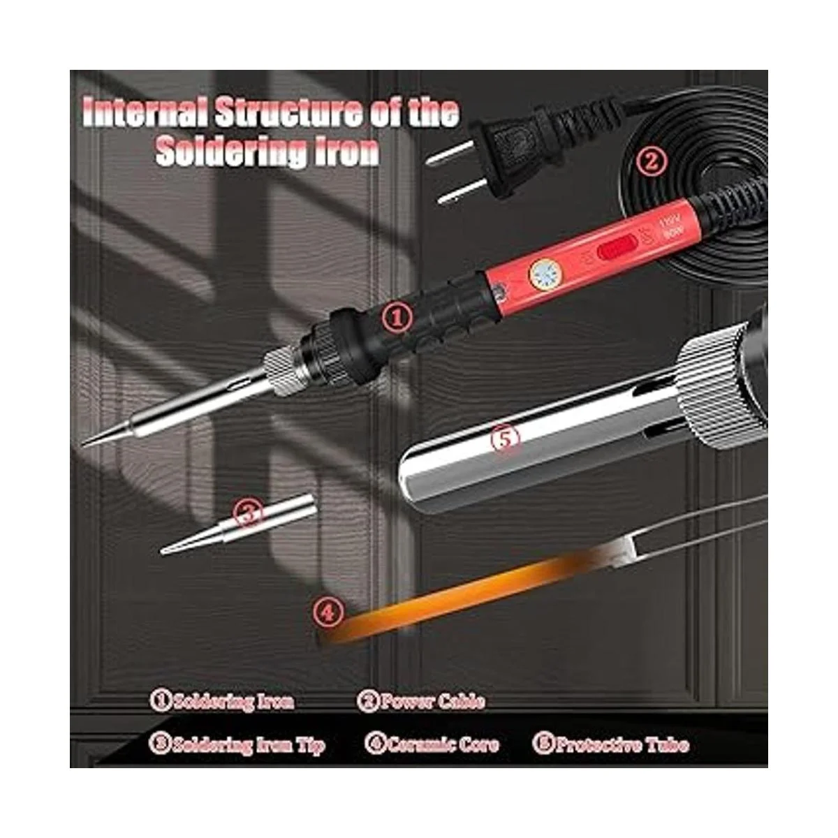 Kit de soldadura, soldador de 60 W, kit de soldadura de 110 V con calentador de cerámica, kit de soldador portátil con 5 puntas de soldadura, soporte, tubo de soldadura, esponja, para metal, joyería, reparación eléctrica, bricolaje