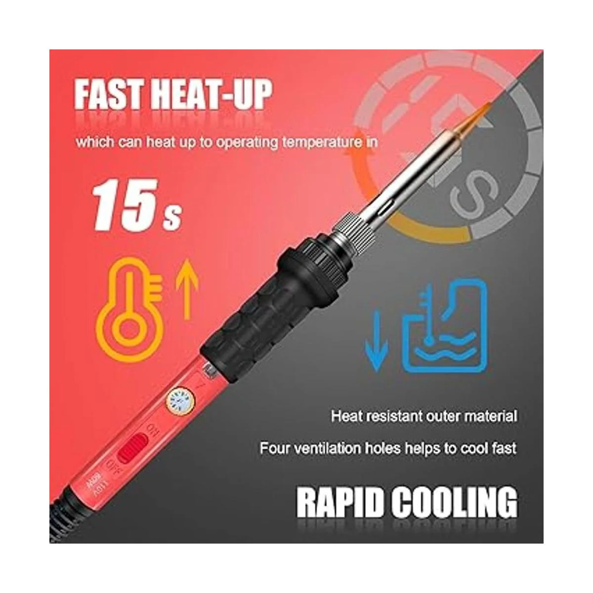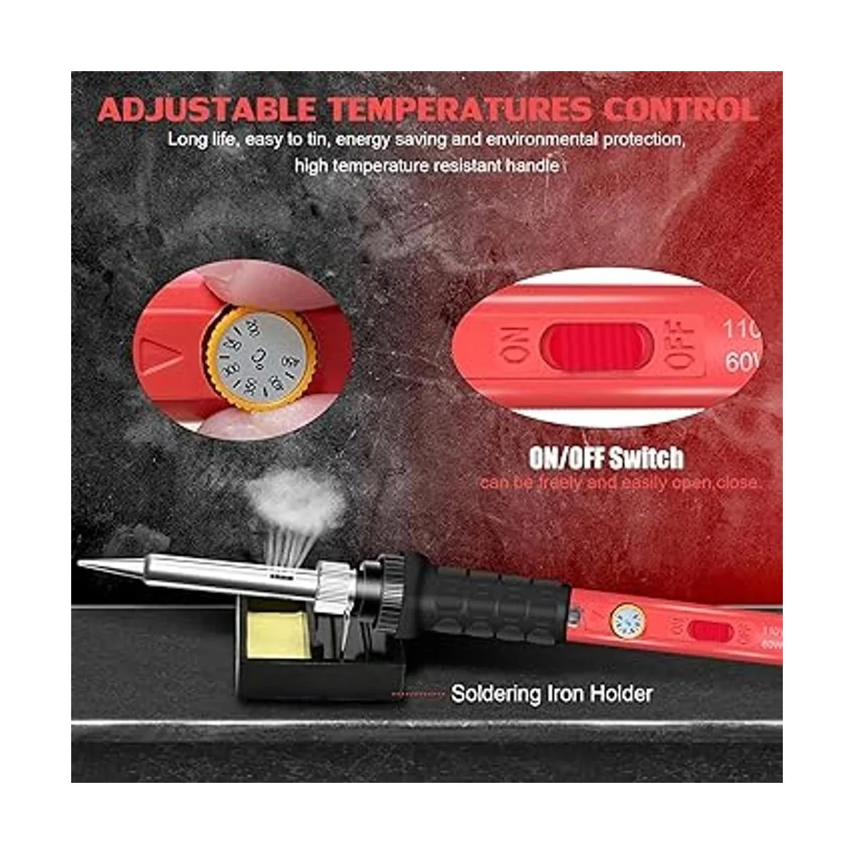 de soldadura mejorada: no necesita estación de soldadura, simplemente conéctalo y úsalo. Y nuestro kit de hierro de soldadura de 60 W con interruptor de encendido y apagado, es conveniente que lo apagues en cualquier momento cuando no necesites usarlo.