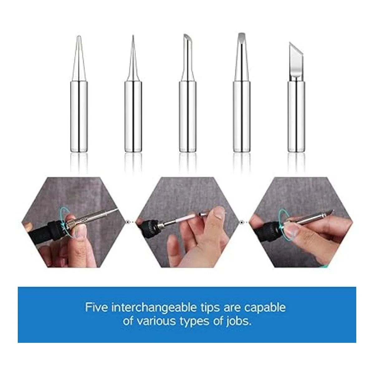 5 puntas de hierro: diferentes formas de puntas hacen que el soldador sea fácil de instalar para guitarra, relojes, cableado, dispositivo móvil, equipos de computadora, pequeños trabajos electrónicos, condensadores de TV o accesorios.