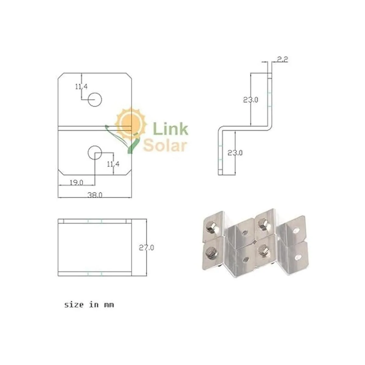 Hecho de aleación de aluminio anodizado sin óxido, pernos, tuercas y arandelas son de acero inoxidable.