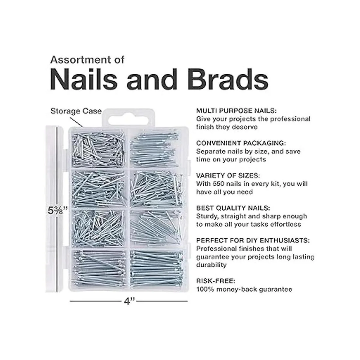 Kit de surtido de clavos de alta calidad Más de 1000 clavos multipropósito 11 tamaños diferentes No se doblan y son resistentes Caja compacta organizada.
