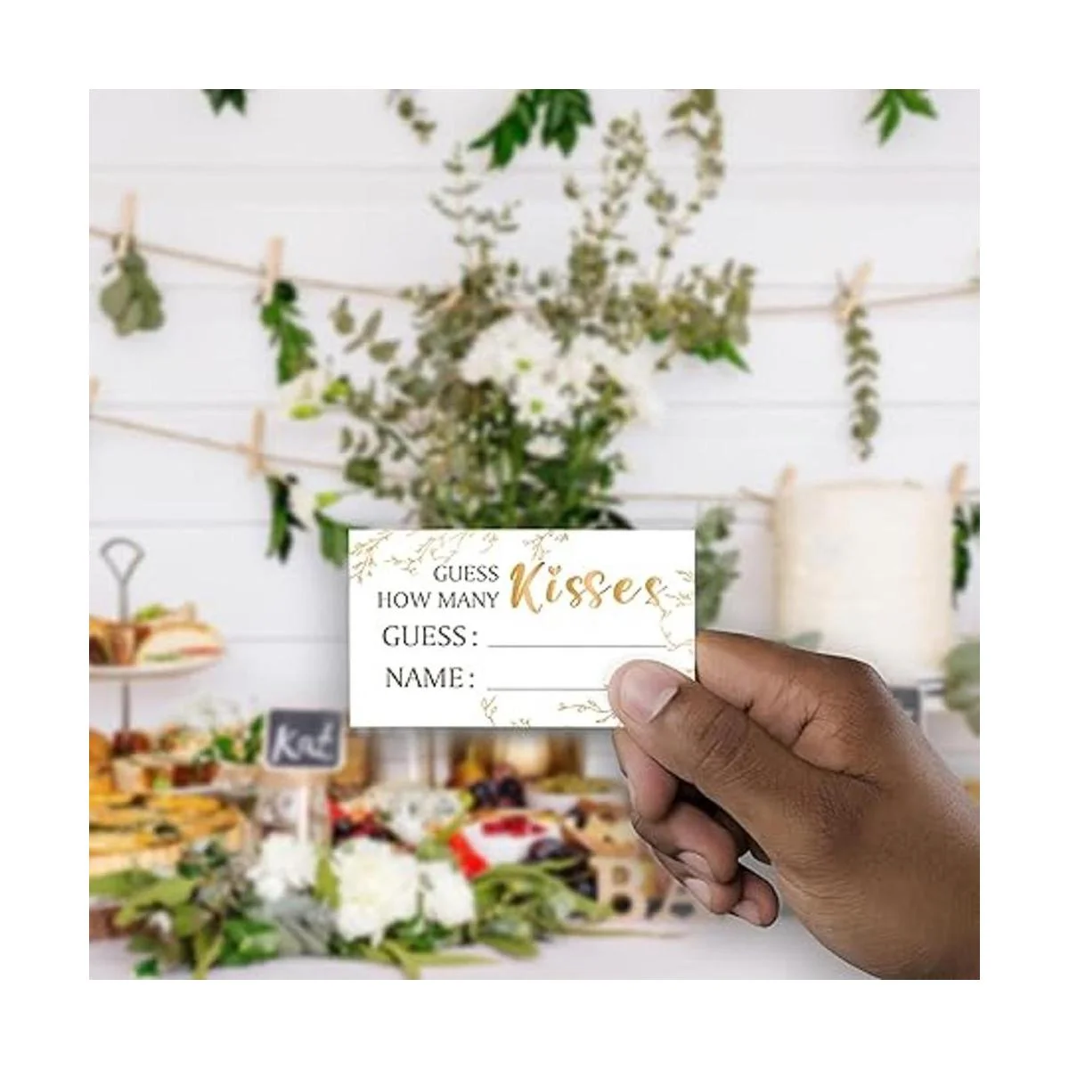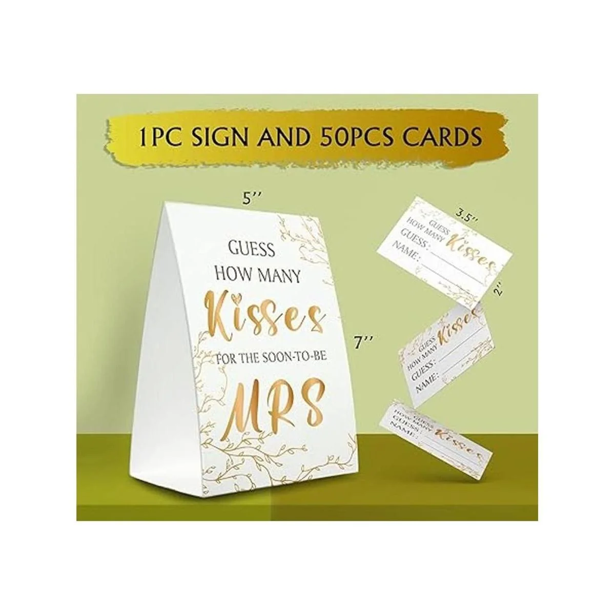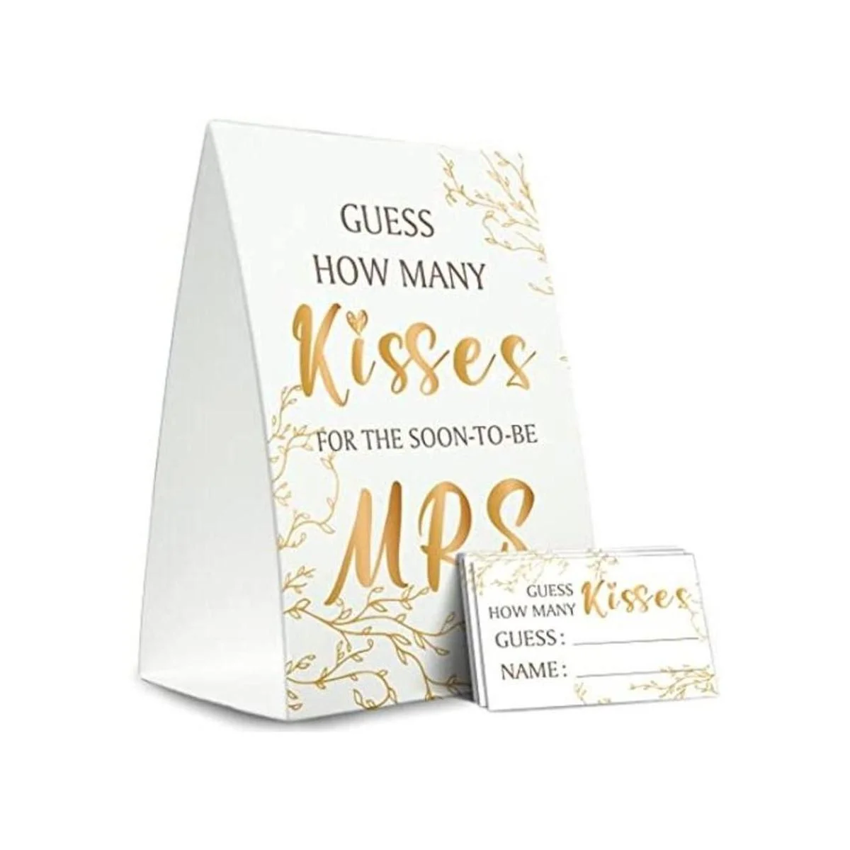 Kit de tarjetas de juego de despedida de soltera 1 letrero de pie 50 tarjetas de adivinación, dorado, adivina cuántos besos para el pronto para ser señora, fiesta de la tribu nupcial RH13