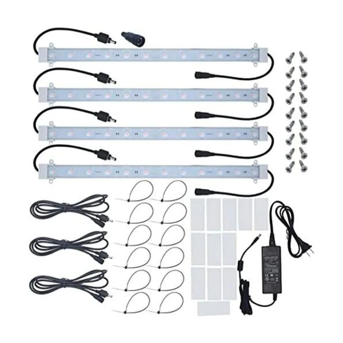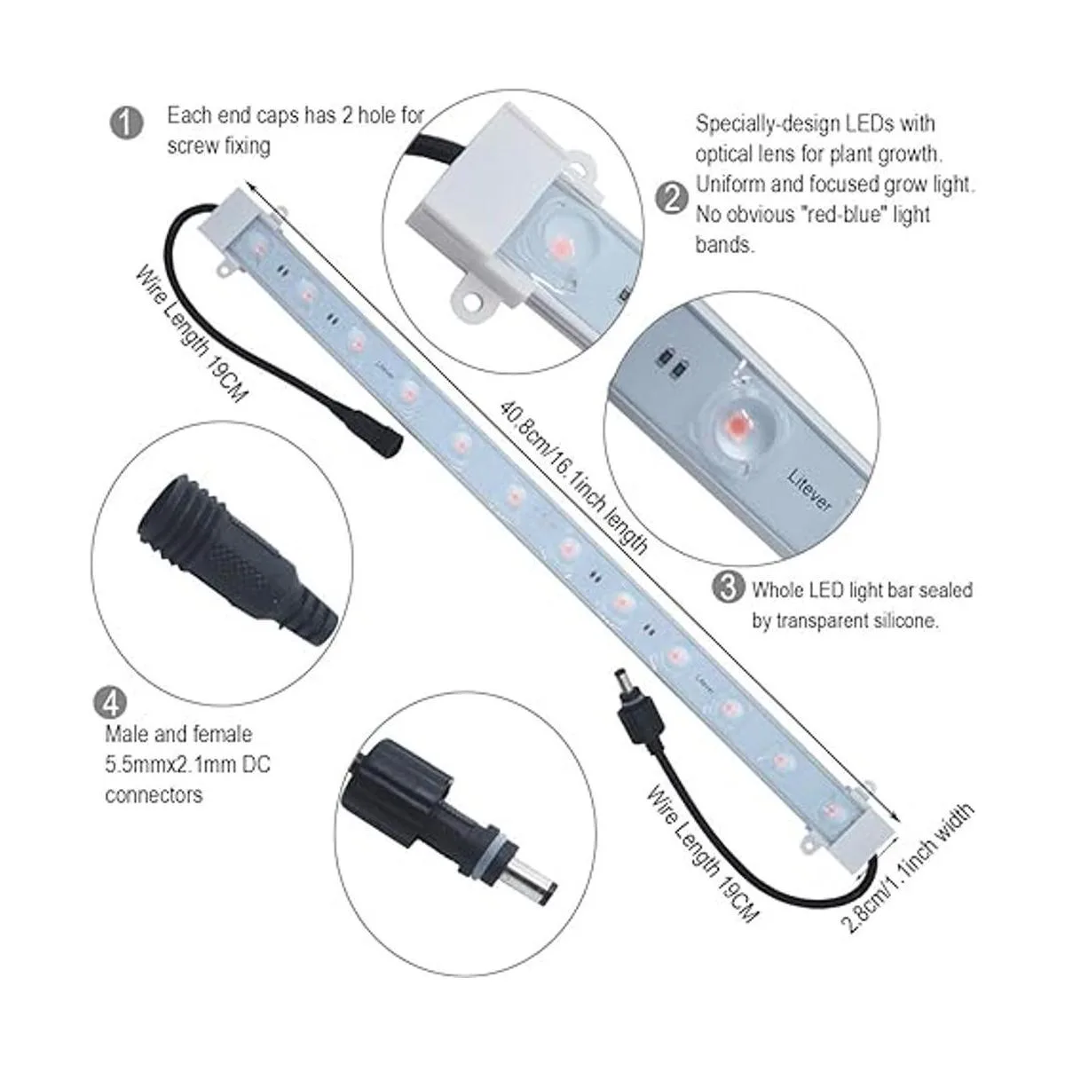 Kit de tiras de luz de cultivo de 45 W, 4 tiras de luz LED de 16 pulgadas con cables de extensión, accesorios de montaje para invernadero, estante de cultivo. Perfecto para cultivo en interiores kit de 4 tiras