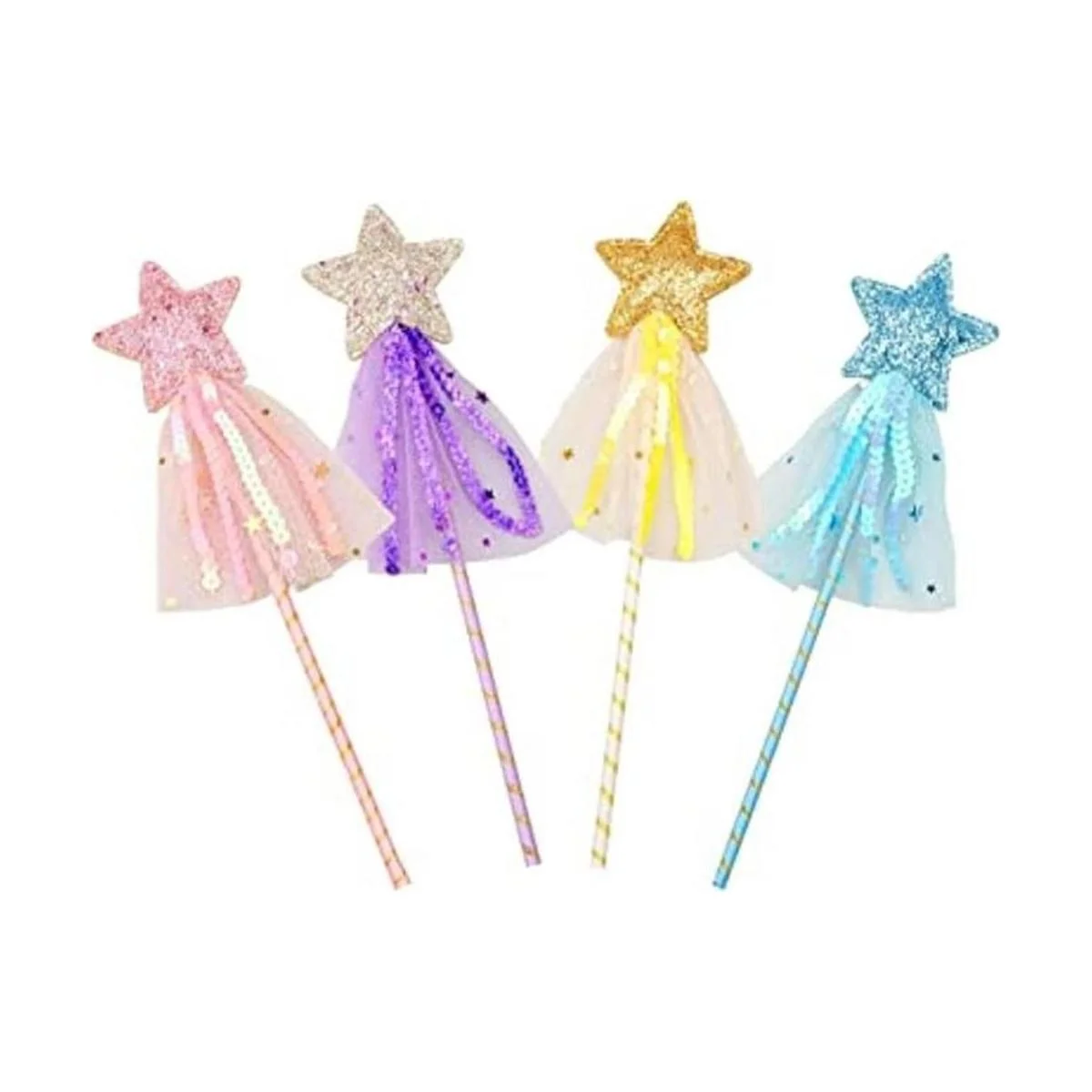 Alta calidad: nuestras varitas de princesa están hechas de textil de calidad, lentejuelas, cinta e hilo de red, con colores brillantes y elegantes, detalles increíbles y colores brillantes con purpurina añadida para efectos deslumbrantes.