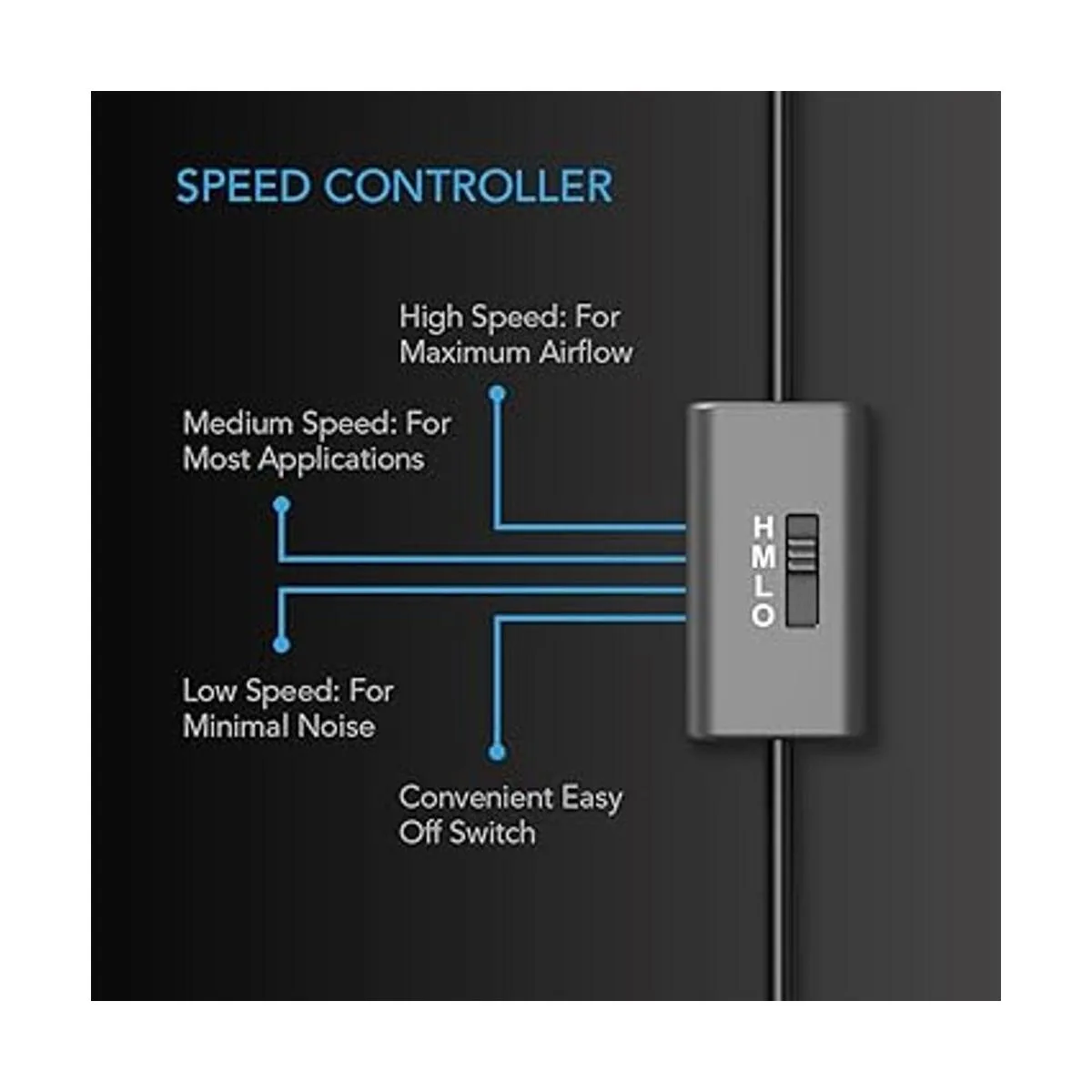 Incluye un control de varias velocidades para ajustar la velocidad del ventilador a niveles óptimos de ruido y flujo de aire.