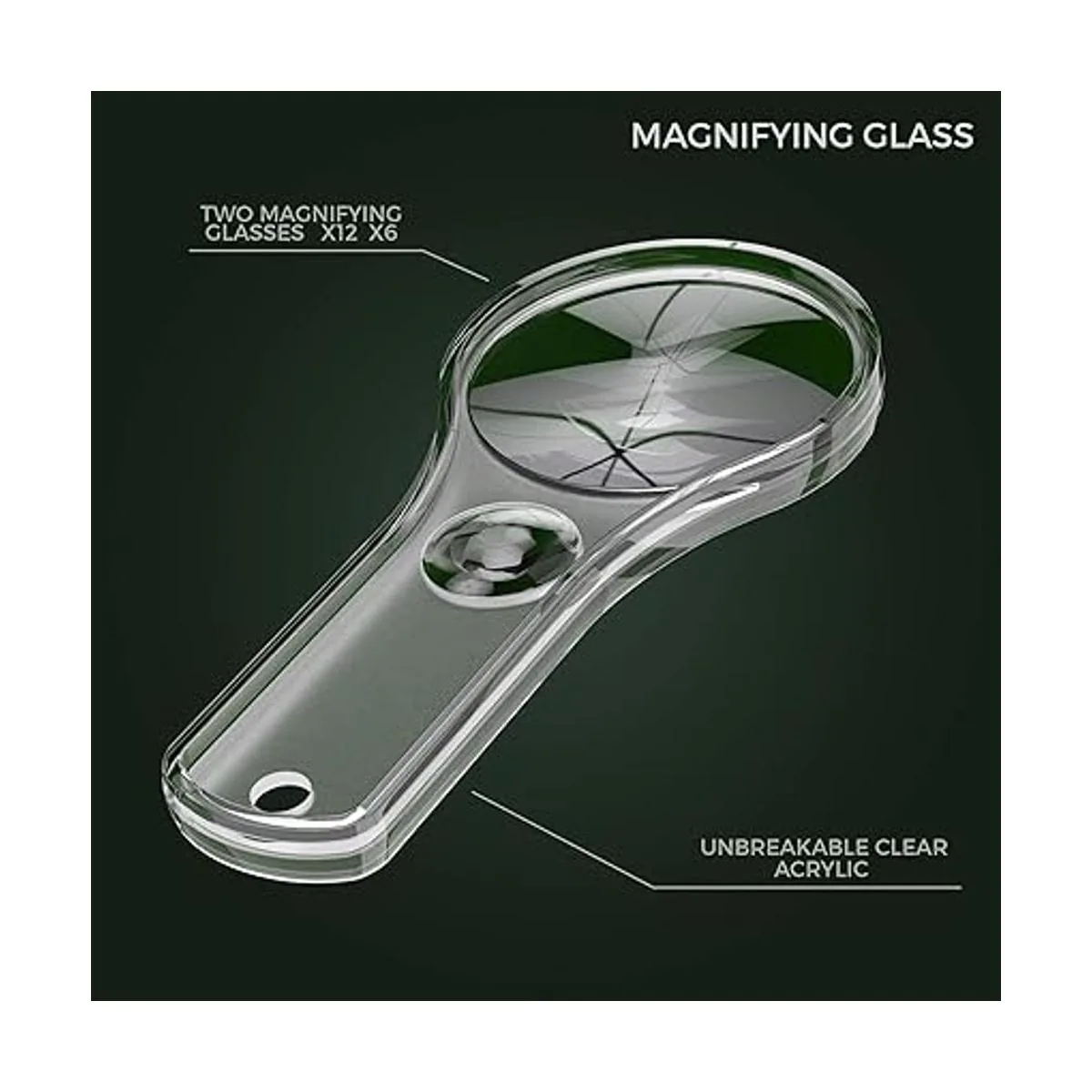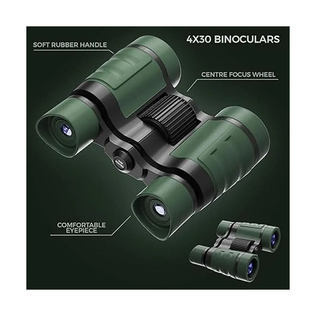 Binoculares 4x30mm: Perfecto para observar aves, explorar la naturaleza o espiar a animales lejanos. Hecho de caucho de calidad a prueba de golpes para mayor comodidad e incluye protección ocular de caucho y correa para el cuello para un llevarlos fácilmente. Lupa: Estudia los insectos de cerca con la lupa de tamaño bolsillo.