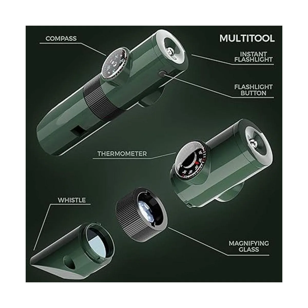 Multiherramienta con 5 funciones: Brújula: Perfecta para aprender navegación básica y cómo leer mapas. Termómetro: Aprende también sobre grados Celsius Fahrenheit con la guía incluida idioma en español no garantizado. Silbato: Diviértete jugando al aire libre. Linterna instantánea: Para ese momento que necesitas una luz rápida. Lupa: Una lupa especializada adicional.