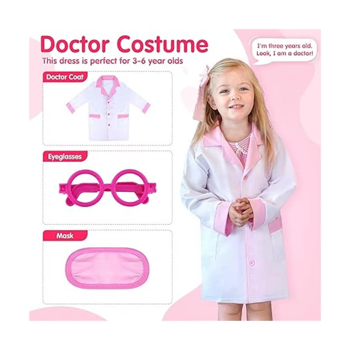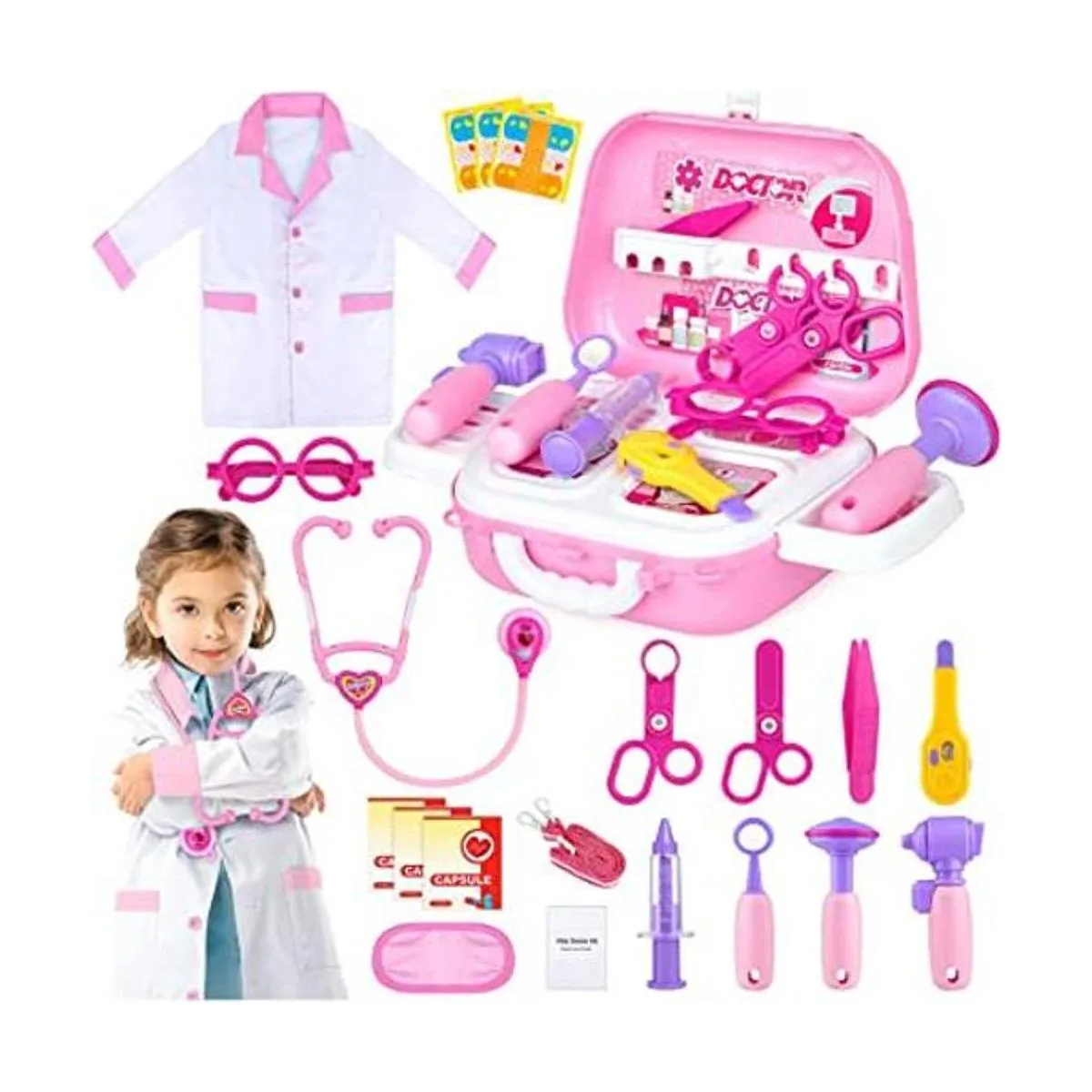 Kit médico para niños, kit de médicos rosados para niños, 22 piezas, regalo de juego médico para niños, juego de juguetes médicos con juego de rol, disfraz de médico para niños de 3, 4, 5, 6 años para jugar a roles