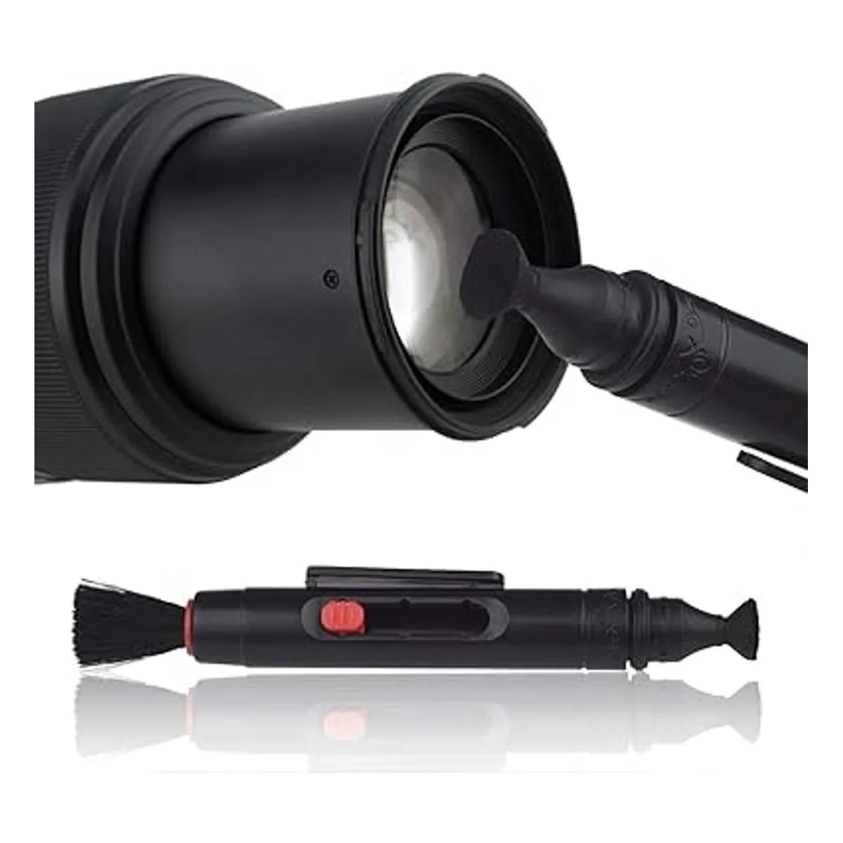 El bolígrafo de limpieza de lente de doble cara cuenta con un cepillo de eliminación de polvo en un lado y un elemento de limpieza especial no líquido en el otro lado que está diseñado para nunca secarse.