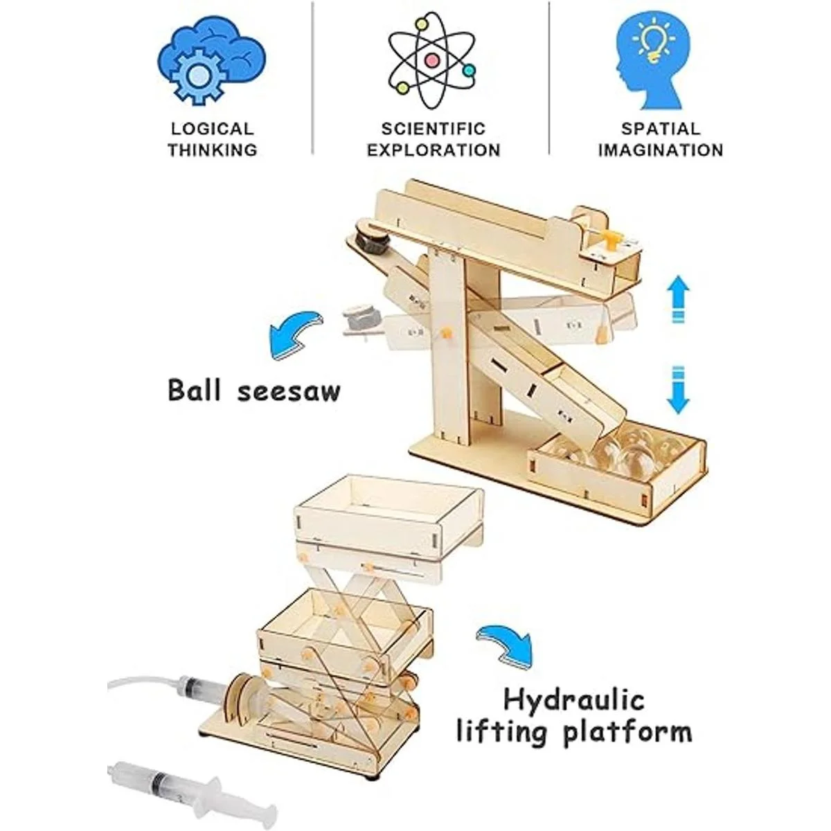 Estimula el interés y la curiosidad de los niños: con varios rompecabezas de madera, tornillos e imán para que los niños monten bolas de visión, plataforma de elevación hiperbólica, levitación mágica, estructura de tensión, binocle y proyección holográfica 3D
