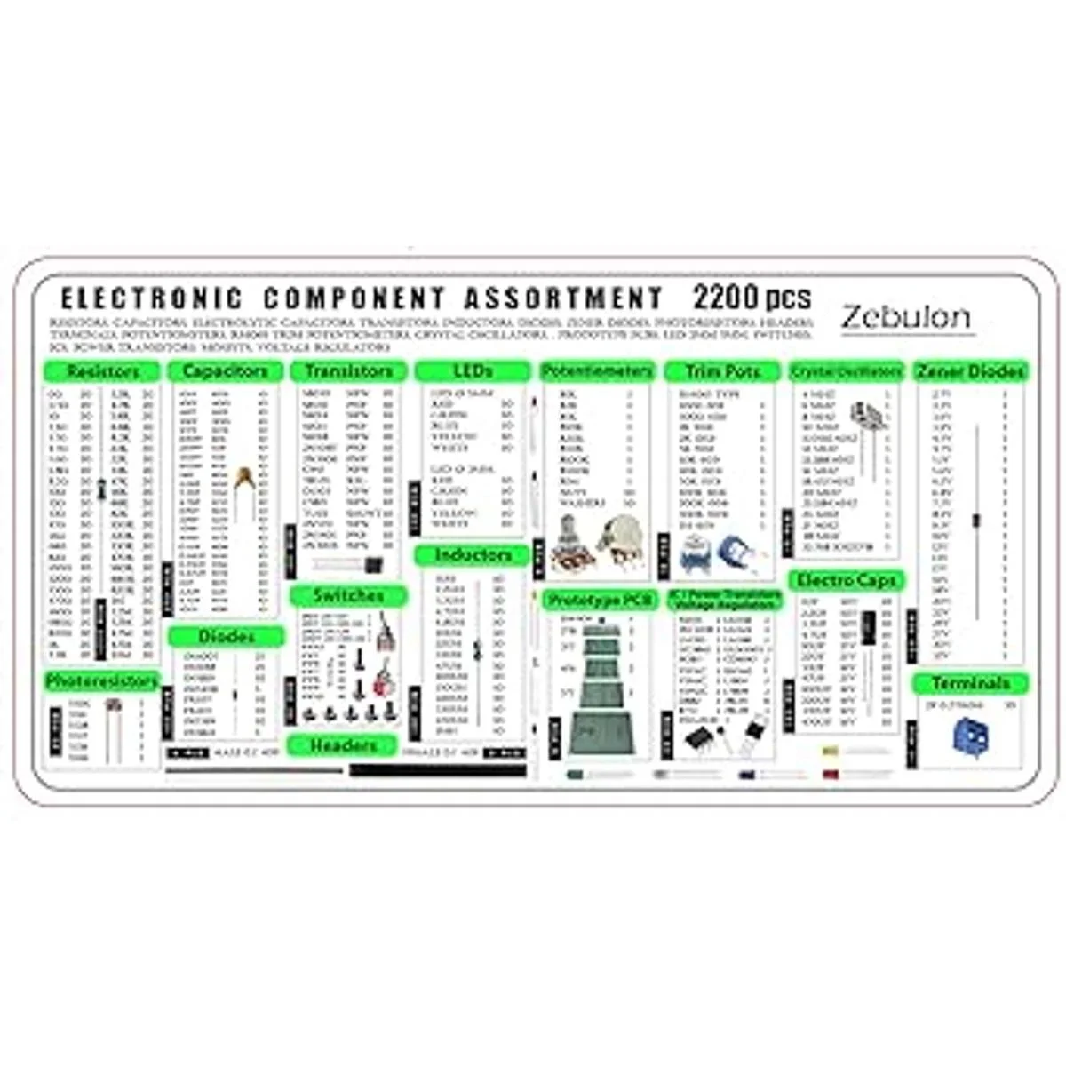 Incluye 2200 piezas de los componentes Eletronic más importantes y útiles