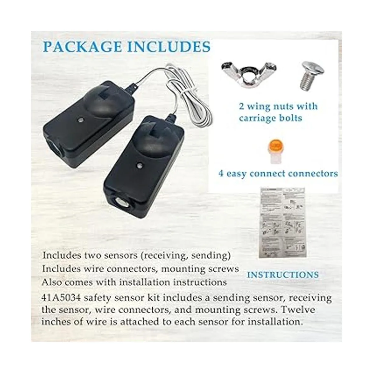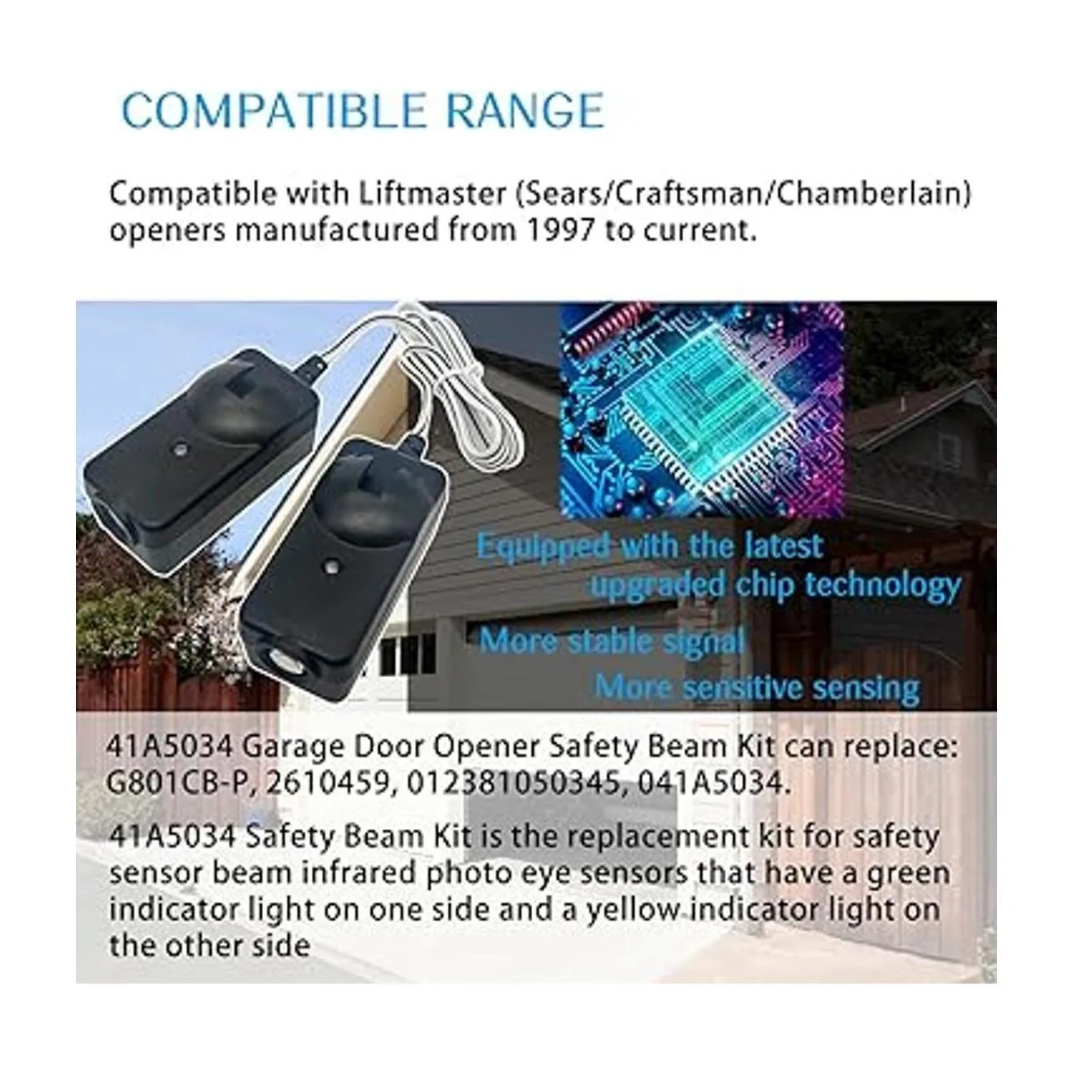 Marcas compatibles: el kit de haz de sensor 41A5034 es compatible con la mayoría de abridores de puertas de garaje Liftmaster, Chamberlain, Sears, Raynor, Crafsman en el mercado. Sustituye a 0410136, G801CBP .2610459, 012381050345, s5041a5034, 041a5034. Nuestro producto sustituye perfectamente al sensor original.