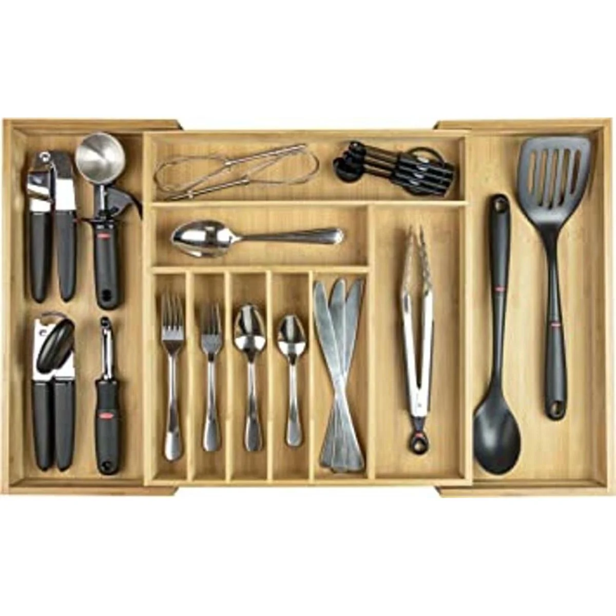 KitchenEdge Organizador de cubiertos y utensilios de alta calidad para cajones de cocina, 100 bambú