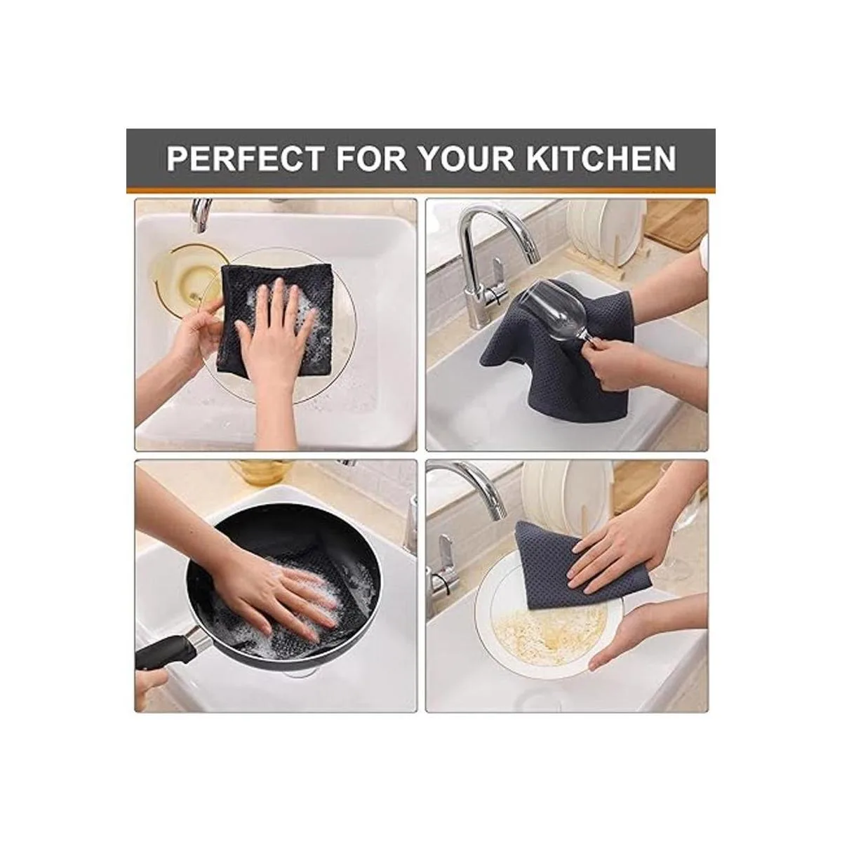 Kitinjoy Paños de cocina de 100 algodón, tela de tejido gofrado, paño de limpieza ultrasuave, absorbente y de secado rápido.