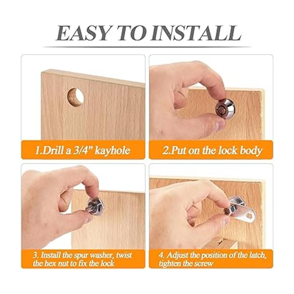 Fácil de instalar: taladra un agujero en el lugar adecuado, inserta el cabezal de bloqueo, fija la leva con tornillos de fijación.