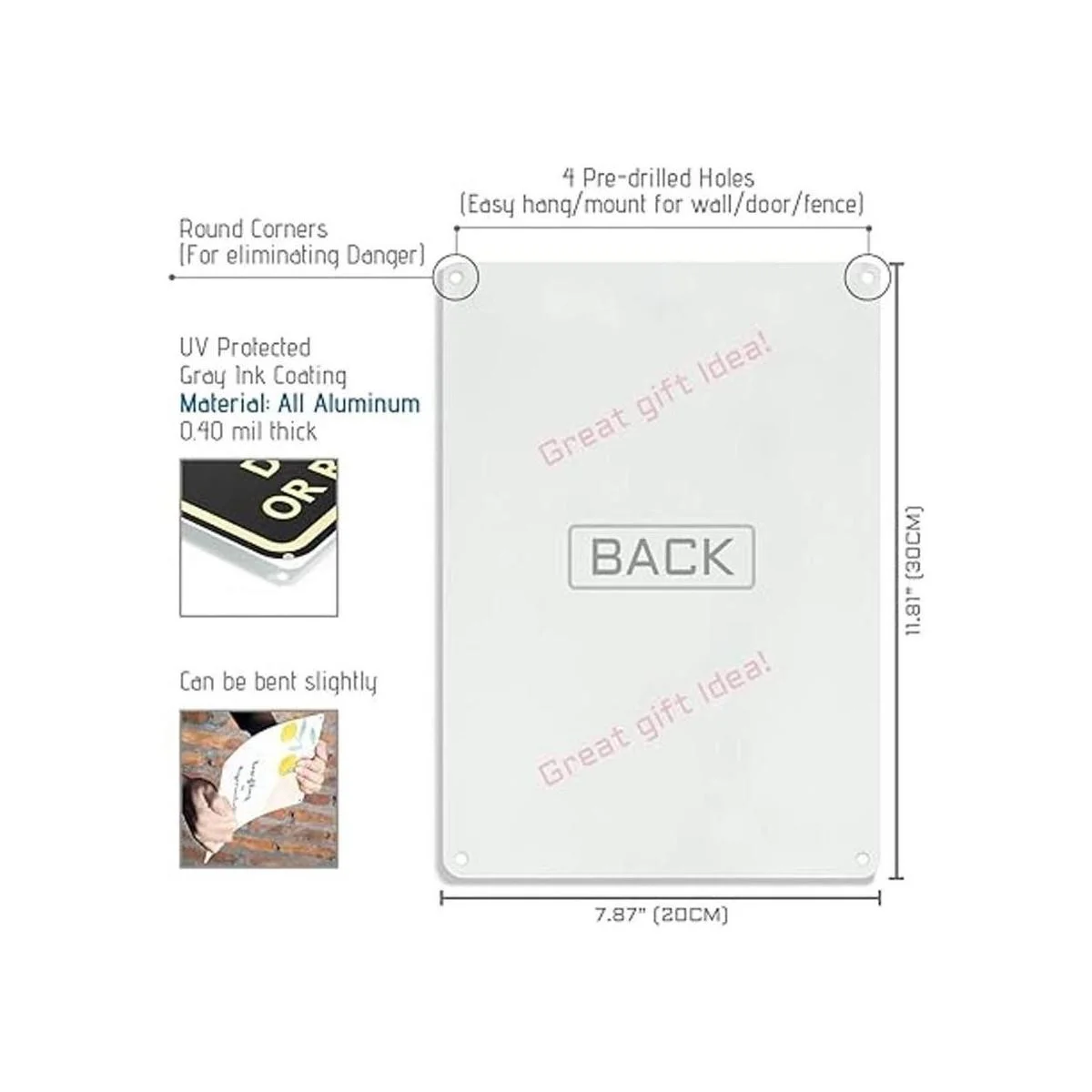 Agujeros preperforados en las esquinas para colgar fácilmente