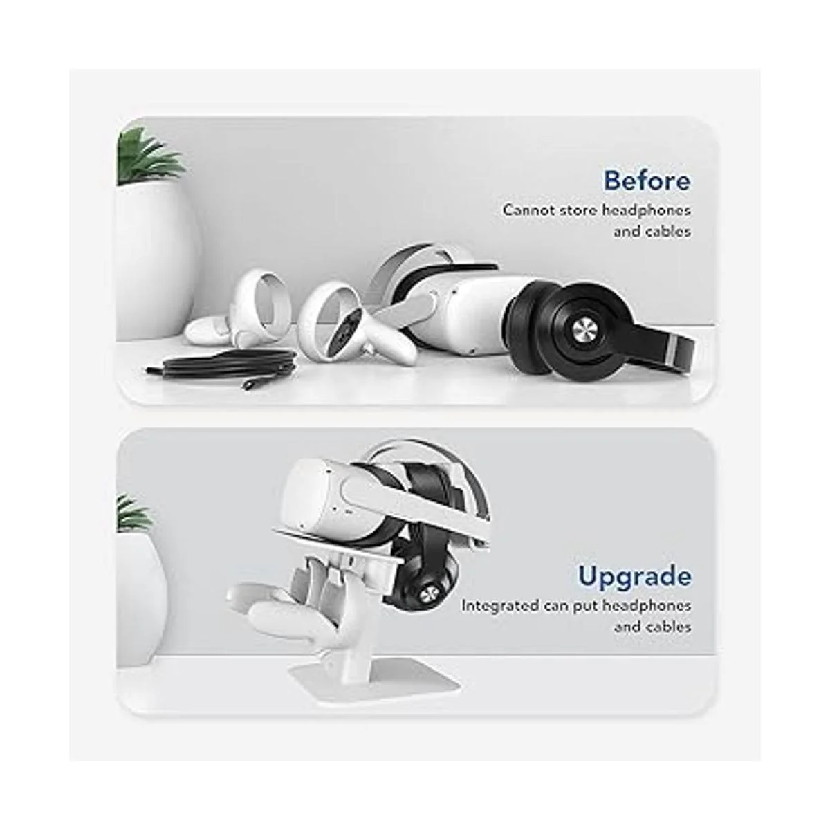 Uno para todos: Ahora no solo puedes poner auriculares y controladores de realidad virtual en un soporte de realidad virtual mejorado, sino que puedes poner más servicios como auriculares, cables de datos extendidos y correa para la cabeza para ser compatible con Quest 2. Un soporte VR mejorado resuelve todos tus problemas de almacenamiento.