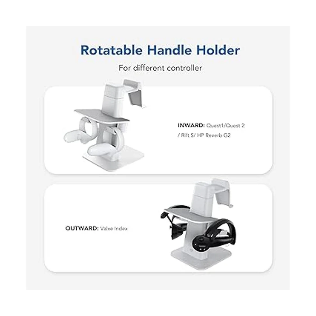 Protege las lentes de tus auriculares VR: protege y muestra tus auriculares VR en el soporte vertical con la postura más estable, sin contacto con las lentes, no te preocupes por arañazos. El soporte giratorio te permite cambiar fácilmente a más tipos diferentes de controladores.