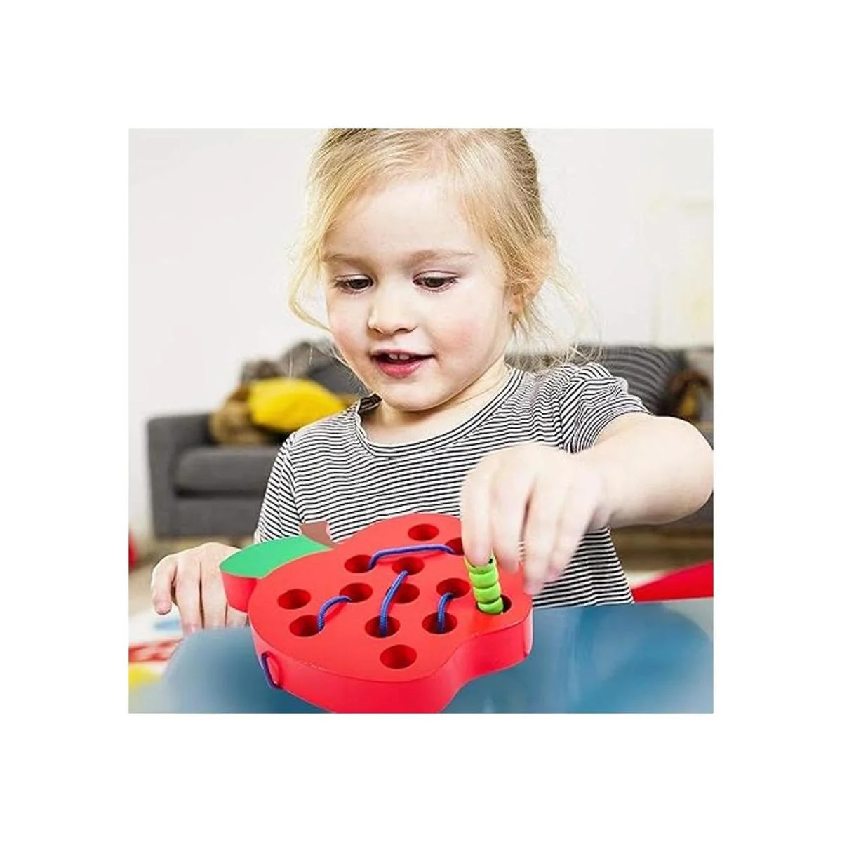 kizh Juguetes de enhebrado de manzana con cordones de madera, rompecabezas de viaje, juego Montessori de aprendizaje temprano de habilidades motoras finas, regalo educativo para niños pequeños de 1, 2, 3 años