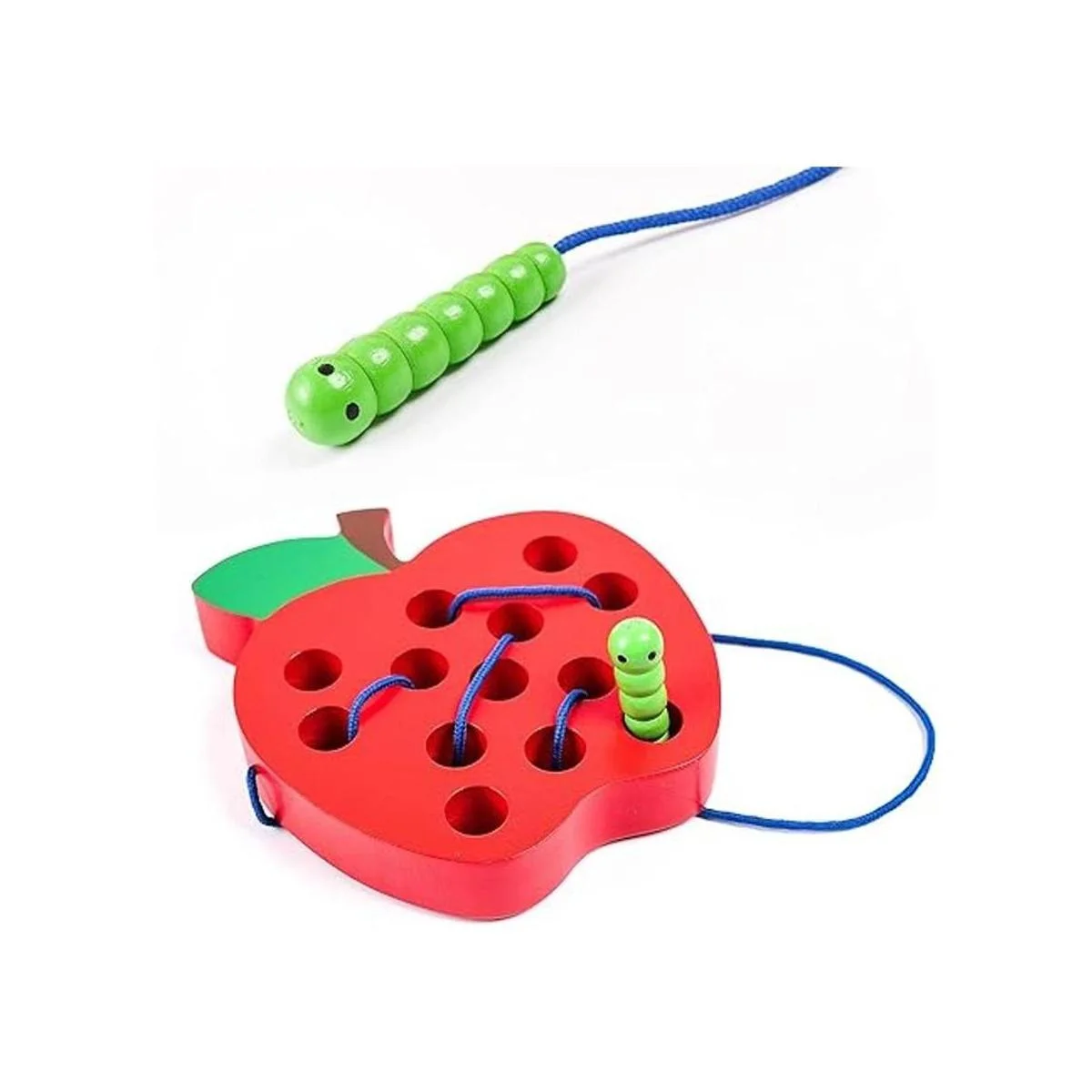 Manzana grande de madera: diseño de manzana roja grande, 13 agujeros lisos con una oruga hambrienta, la manzana se ve muy deliciosa, deja que la oruga hambrienta se coma antes. Las pequeñas manos pueden ayudar a que la oruga muerda a través de la manzana enhebrando dentro y fuera. Los bebés tienen que pensar en alguna manera de resolverlo, y mantienen a los niños ocupados durante horas.