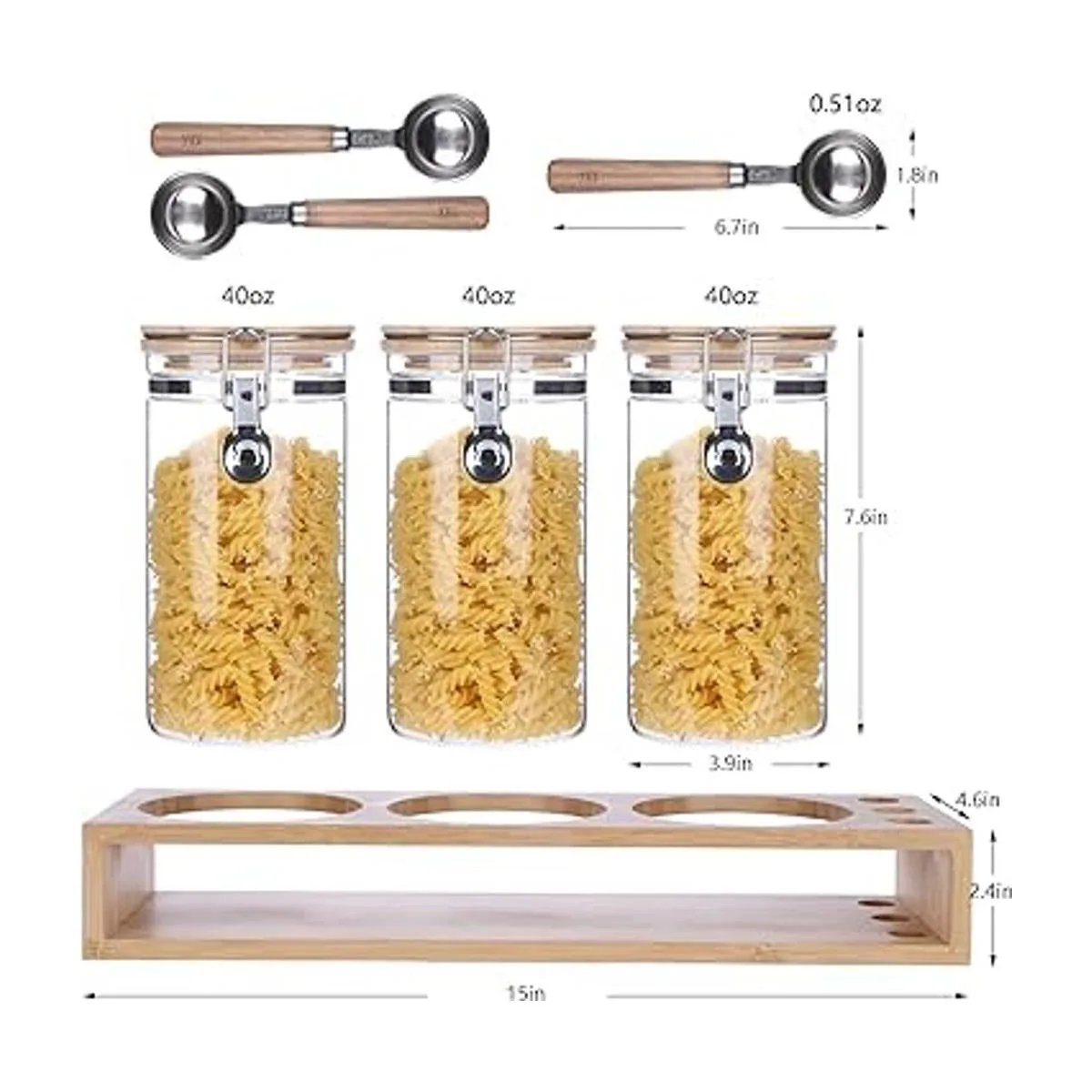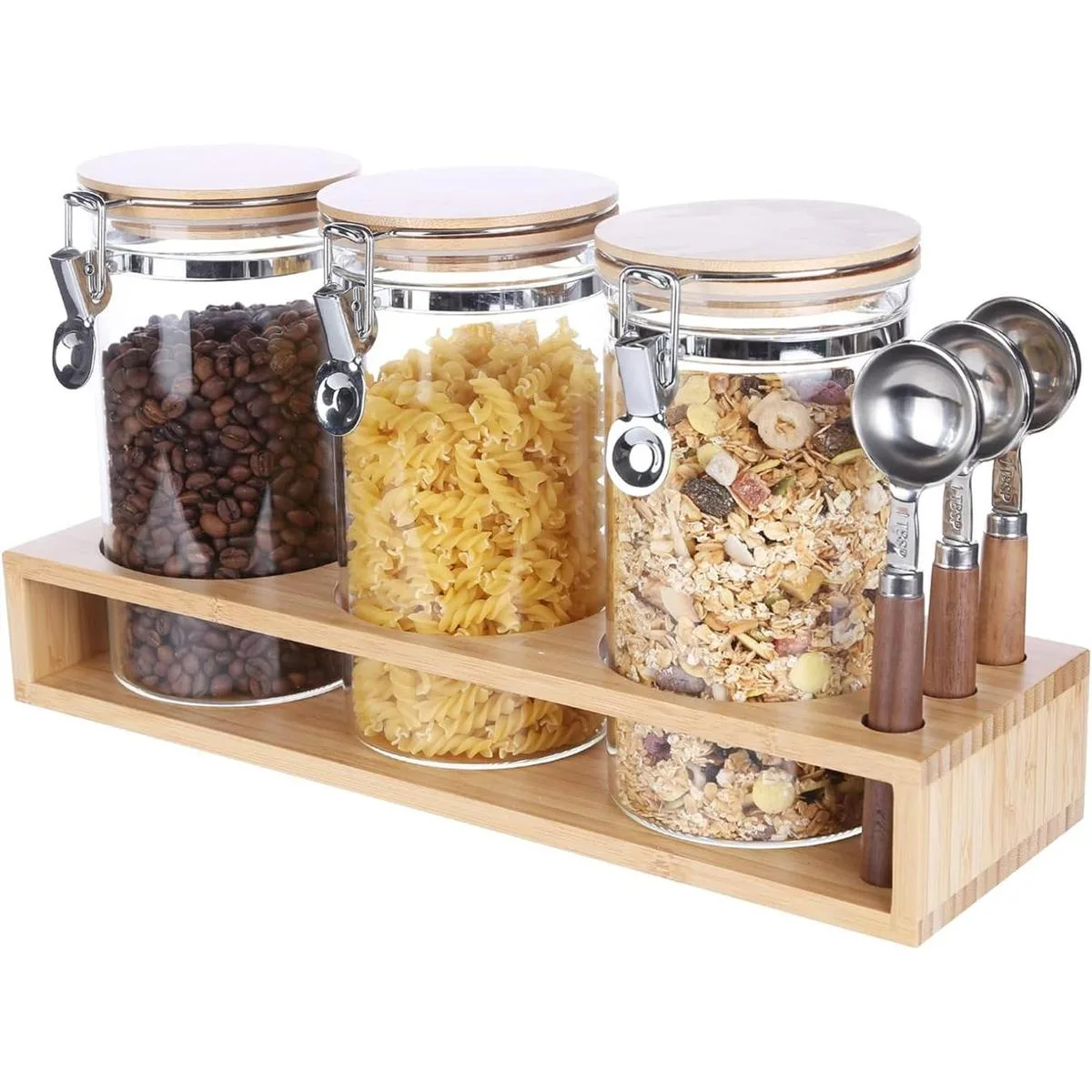 Tarros de almacenamiento de vidrio herméticos para encimera de cocina: los tarros de almacenamiento de vidrio son herméticos para almacenar productos secos, como granos de café, nueces, té suelto, dulces y galletas, azúcar y sal, también son perfectos para almacenar conservas, arroz, harina, especias, galletas, etc