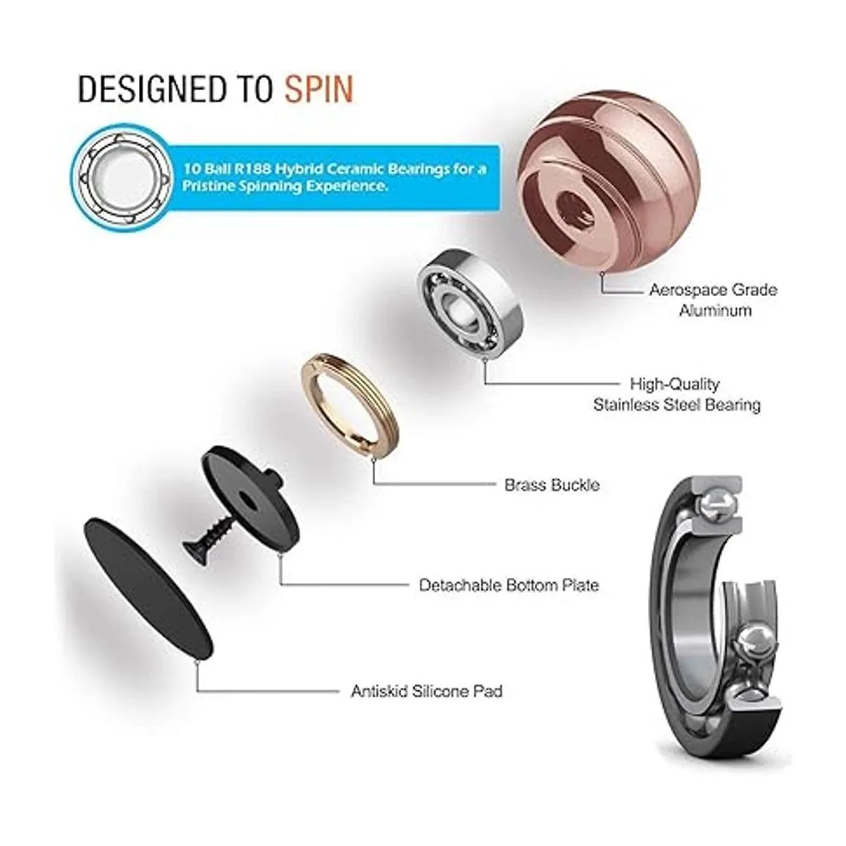 Bien hecho y atractivo Hecho de aluminio sólido con una superficie anodizada para lograr un acabado brillante, colorido y duradero, por favor, siéntete libre de comprar. El tamaño de una pelota de golf, tiene un buen peso, se siente bien en tu mano, no dejarás de querer girarla siempre